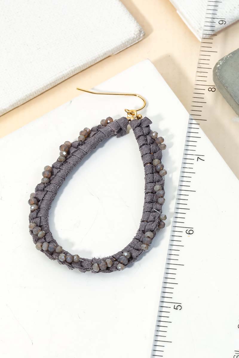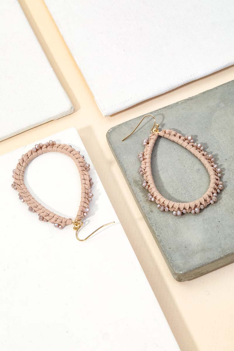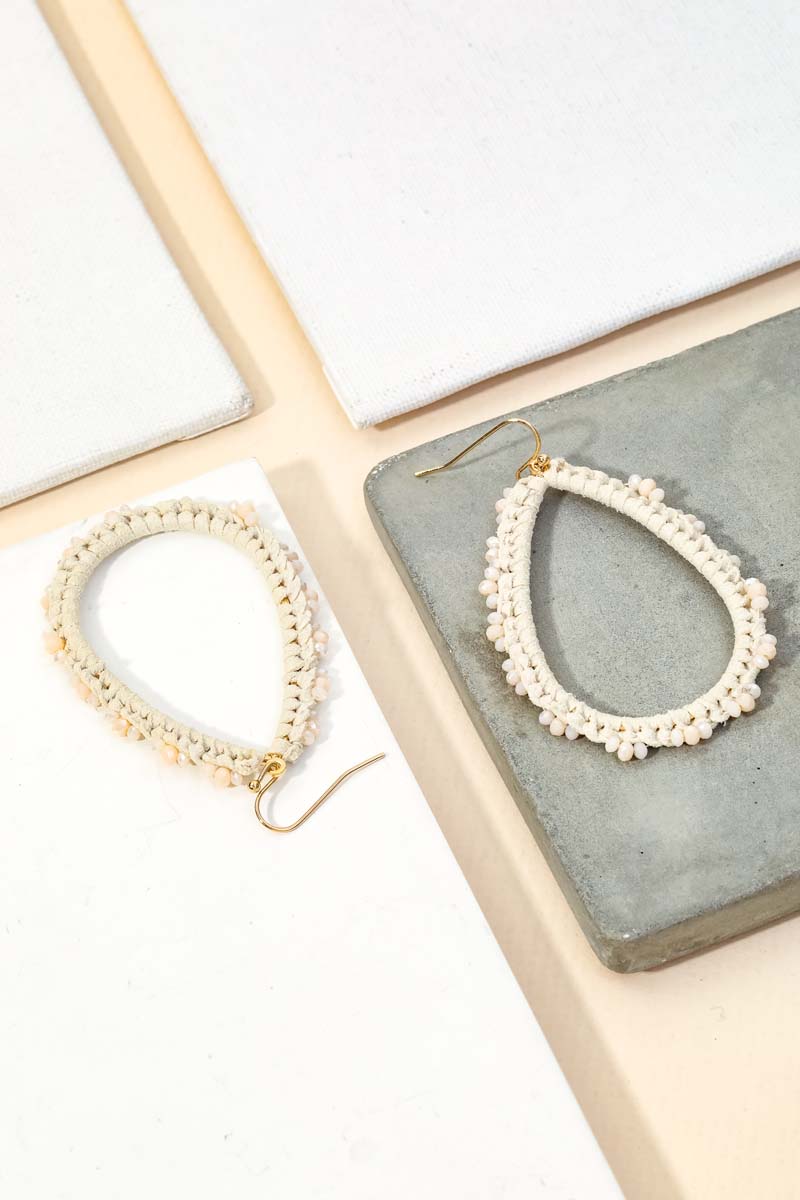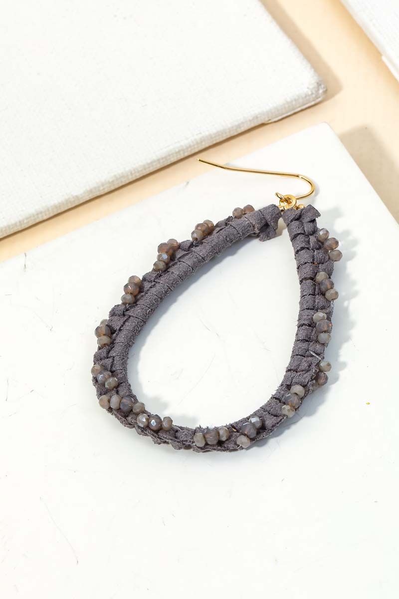 - This is a guaranteed show stopper must have pair of earrings created into a beautiful faux leather teardrop cutout earrings design. A must have in season accessory for this season! Available in BEG, GY, IV and LBR.