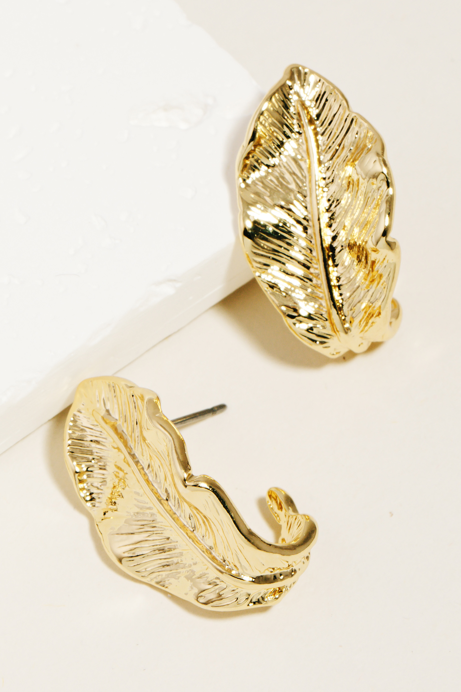 • Add a touch of elegance and glamour to your look, this pair of earrings exudes a refined metallic leaf design. Elevate your style effortlessly with this versatile accessory, enhancing the appeal of any ensemble. Available in G and S. This item is sold in packs of 1.