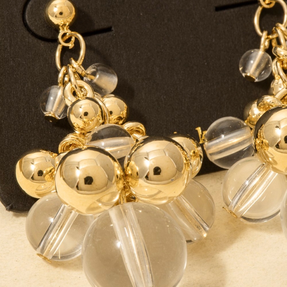 • Effortlessly elevate your style, this pair of dangle earrings showcases a breathtaking metallic and acrlyic beads design. A stylish pair of dangle earrings that's perfect for complementing any outfit you wear. Available in G. This item is sold in packs of 1.