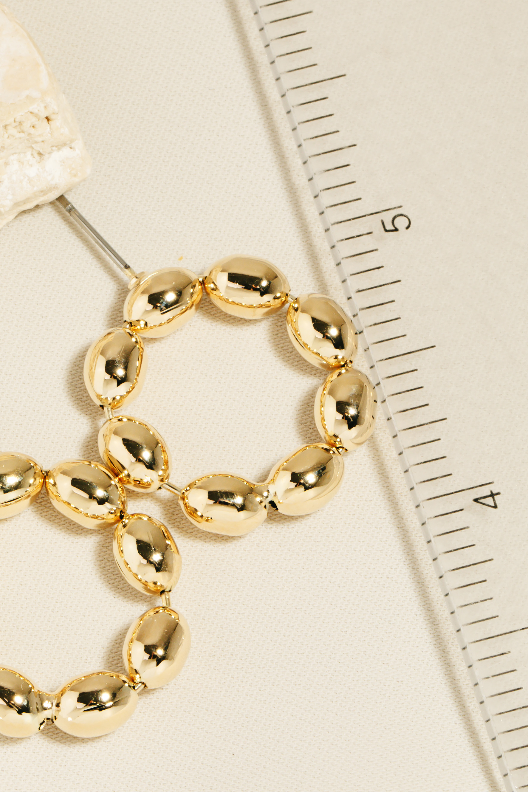 • Effortlessly elevate your style, this pair of drop earrings shows off a distinctive metallic solid beaded hoop design. Elevate your fashion IQ with this versatile accessory, designed to seamlessly integrate into any style profile. Available in G. This item is sold in packs of 1.