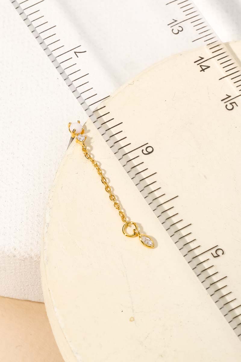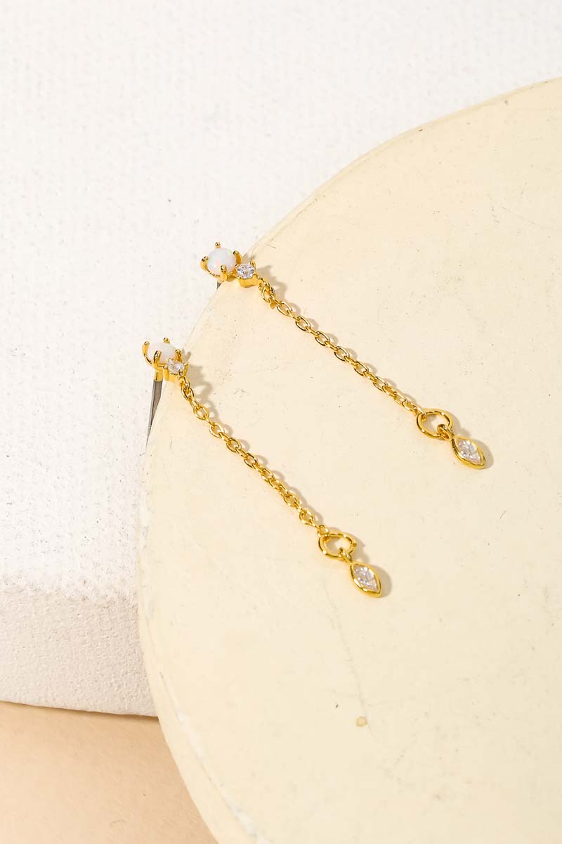 A new must have pair of drop earrings created into a beautiful mini opal stud chain drop earrings design. A stunning must have for the Spring season! Available in G.