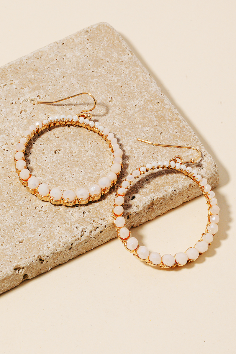• The perfect way to elevate any outfit, this pair of dangle earrings shows off a distinctive mini seed beads and faceted gems hoop design. Redefine your wardrobe with this versatile pair of dangle earrings, a timeless addition that brings an air of sophistication to any look. Available in BEG, BUD, CAQ, IV, NV and TAB. This item is sold in packs of 1.