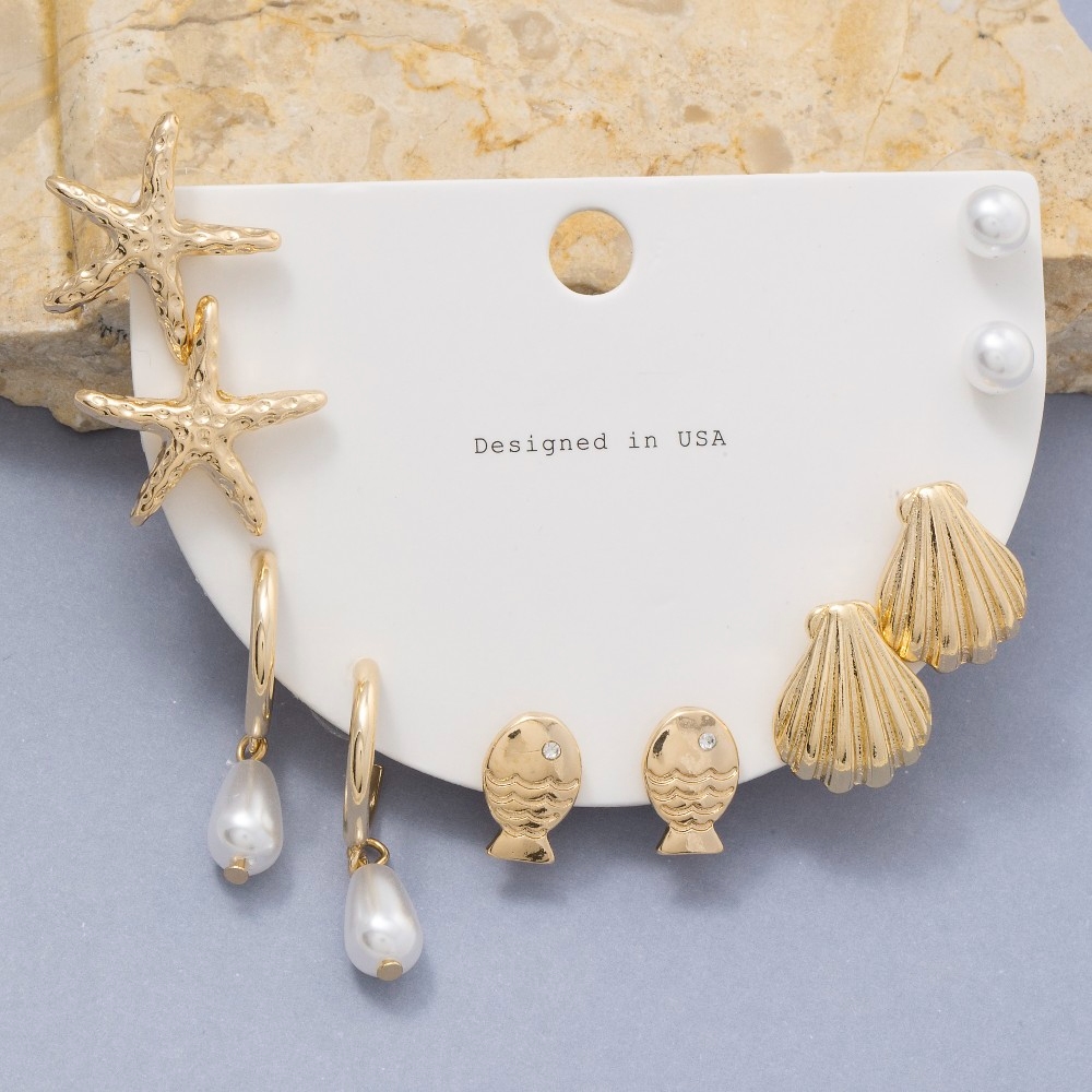 Upgrade your pair of earrings game, this pair of earrings introduces an exceptional mixed sea life themed set design. The perfect pair of earrings for completing any outfit, whether you're dressing up or keeping it casual. Available in GD. This item is sold in packs of 1.