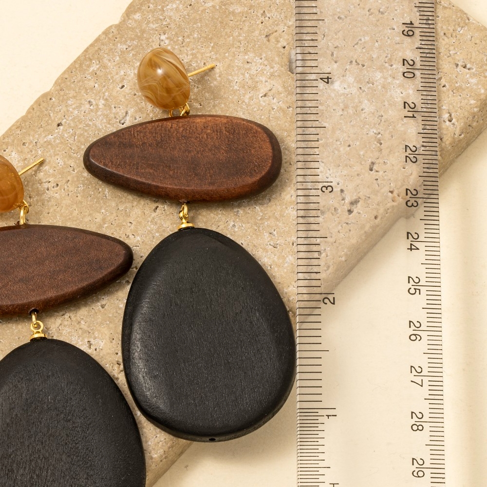 This pair of dangle earrings is made with 20% Resin 80%Wood.