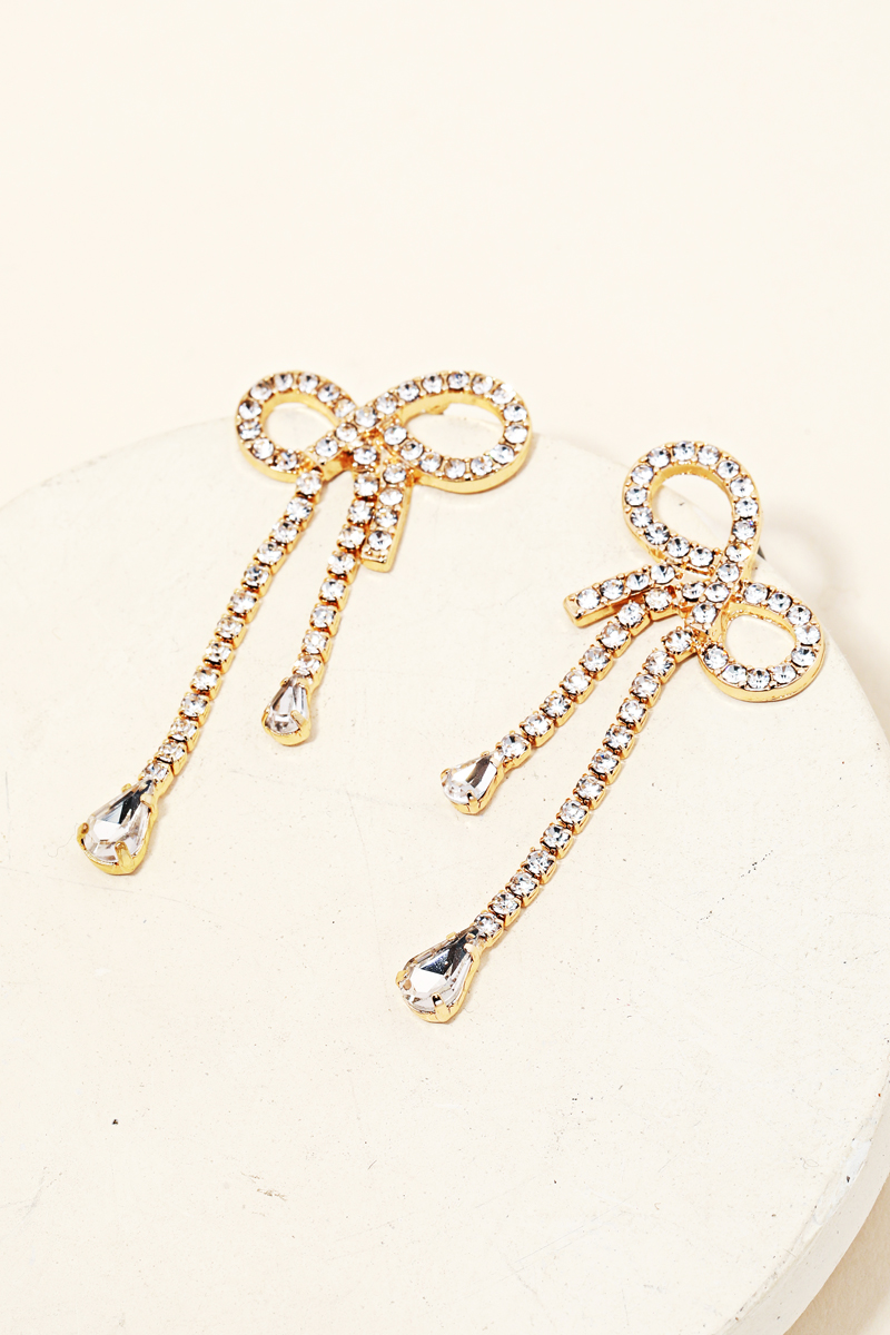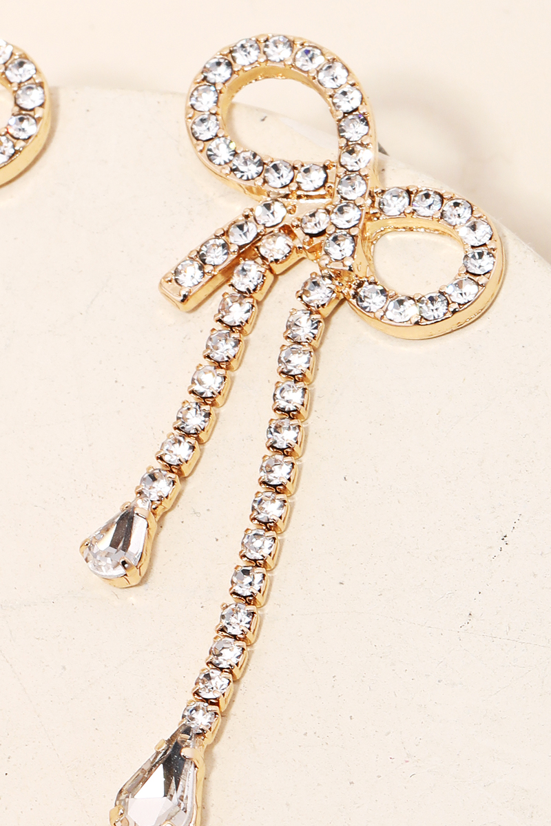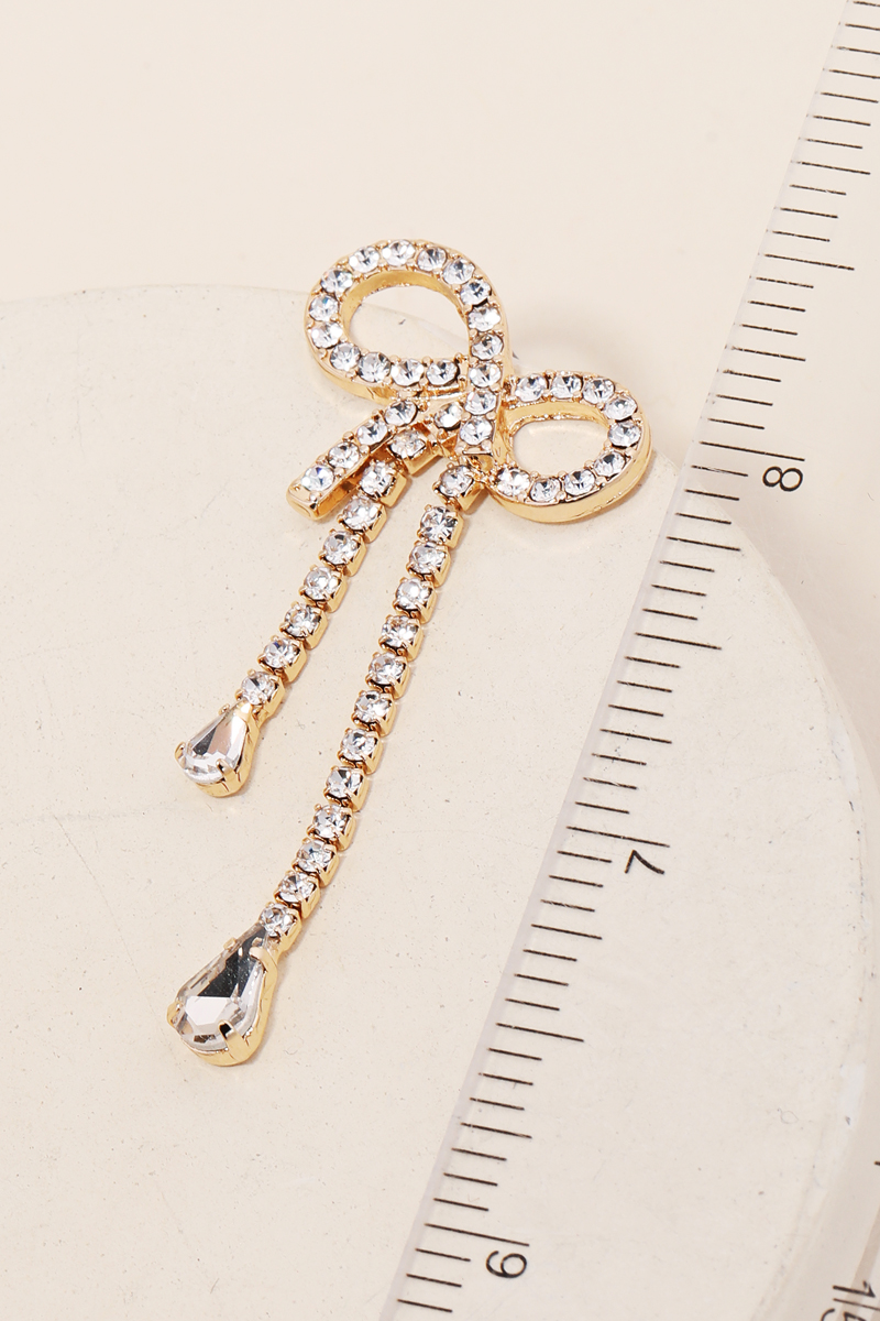 • A must-have addition to any pair of drop earrings collection, this pair of drop earrings embodies a sophisticated pave ribbon bow design. Master the art of accessorizing with this versatile pair of drop earrings, a key element for achieving a chic and polished look. Available in GD, RD. This item is sold in packs of 1.