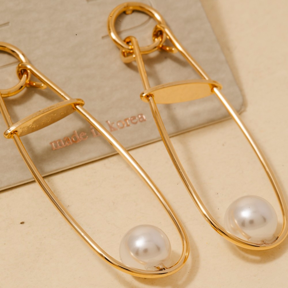 • This pair of drop earrings is made with 90% Brass and 10% Acrylic Pearl.