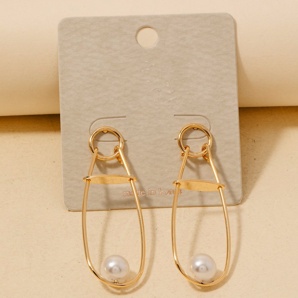 • Sleek, modern, and always stylish, this pair of drop earrings presents a striking pearl bead long oval stud design. This versatile pair of drop earrings adds a touch of elegance to any outfit. Available in G. This item is sold in packs of 1.