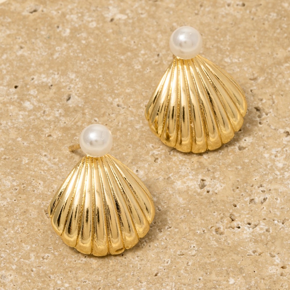 Metallic Accent Sea Shell And Fridge Stud Dangle Earrings