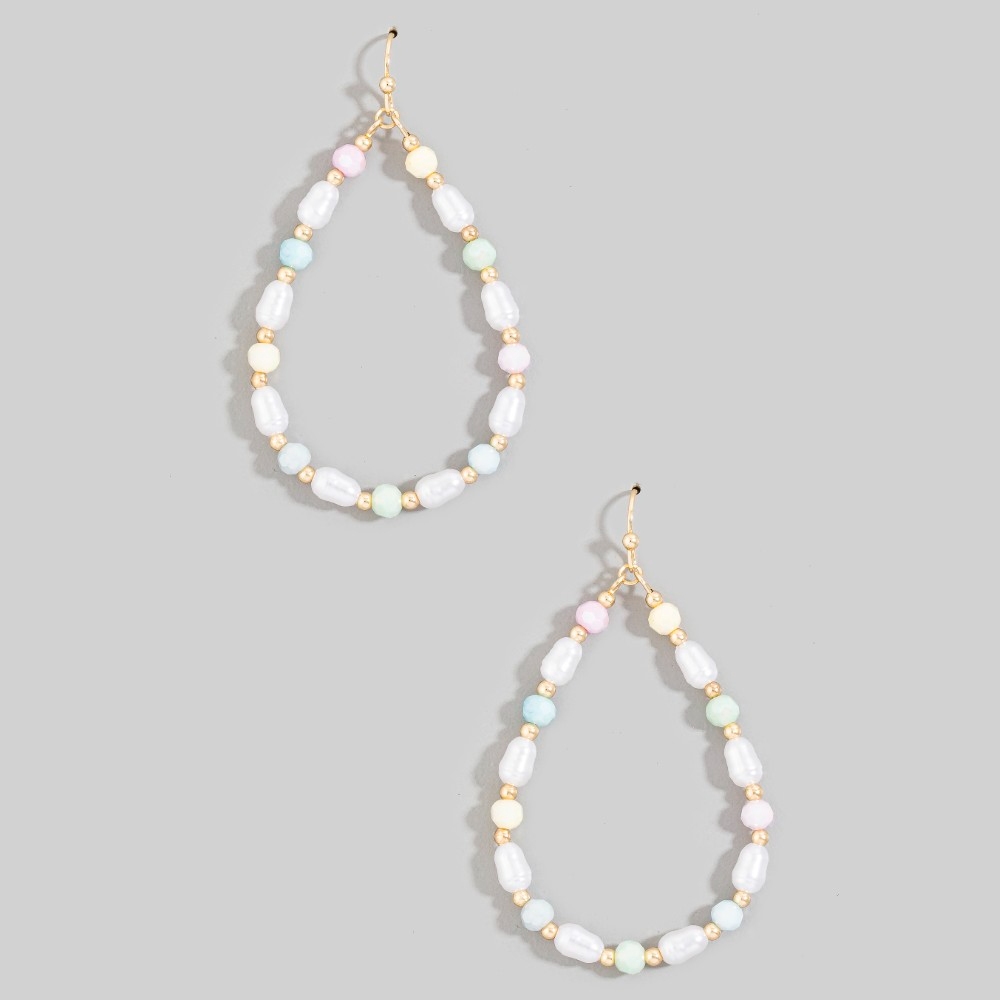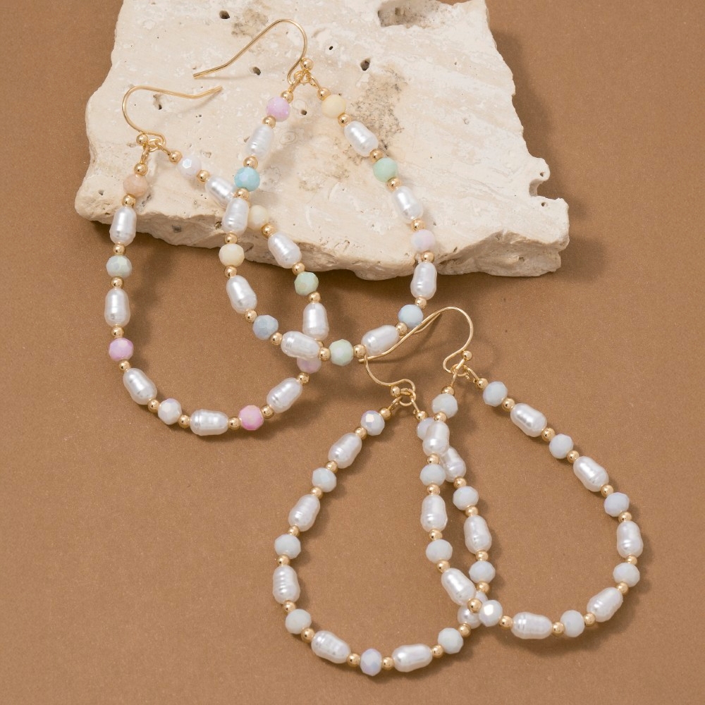 A classic design with a modern twist, this pair of dangle earrings displays a unique pearl and faceted beaded tear design. Discover a new level of fashion versatility as this pair of dangle earrings effortlessly elevates the allure of your attire. Available in LMUL, WHT. This item is sold in packs of 1.