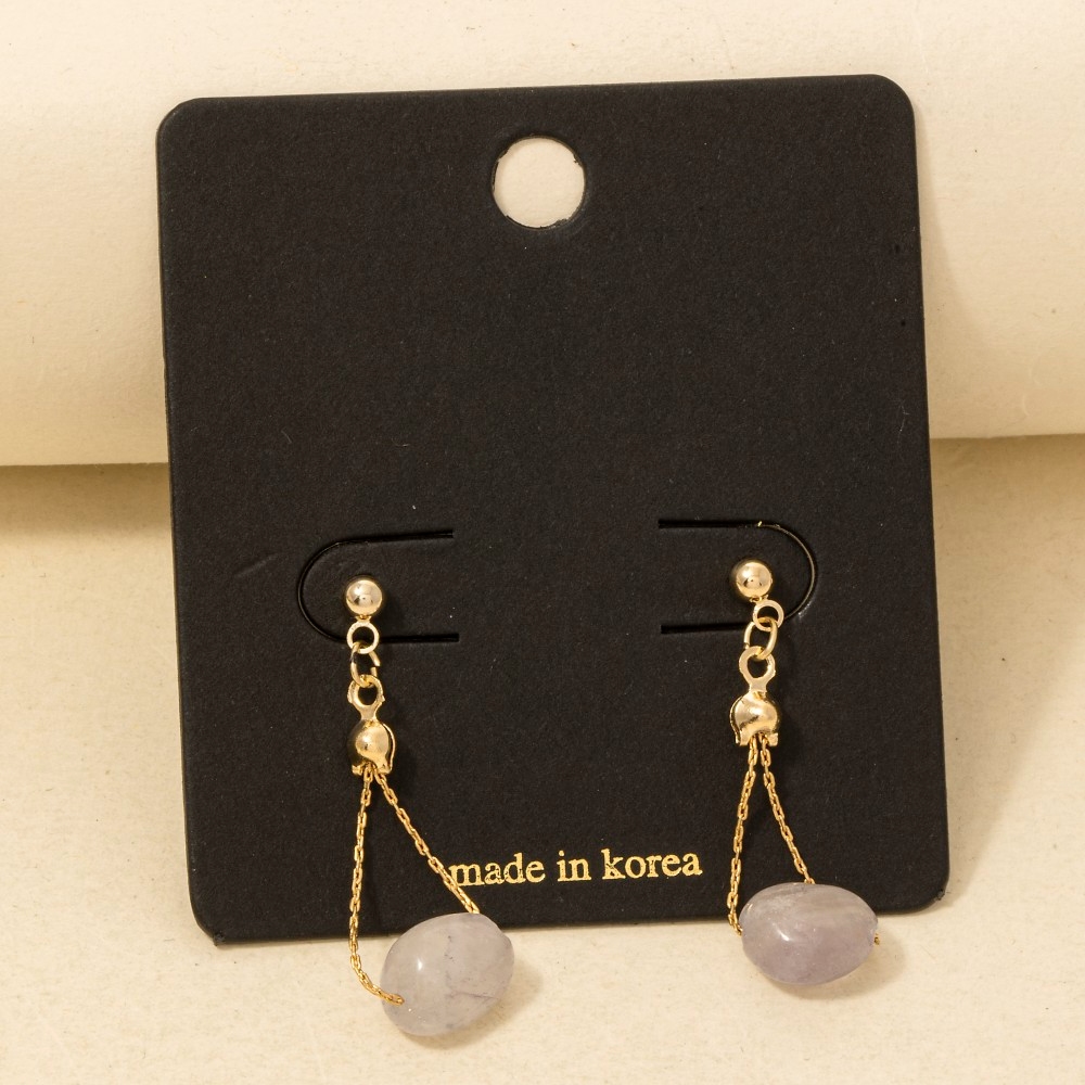 - Stay on-trend and ahead of the fashion curve, this pair of dangle earrings boasts a magnificent polished stone bead chain design. Upgrade your fashion game with this versatile pair of dangle earrings, a timeless addition that complements any outfit seamlessly. Available in GN, PK, PU. This item is sold in packs of 1.