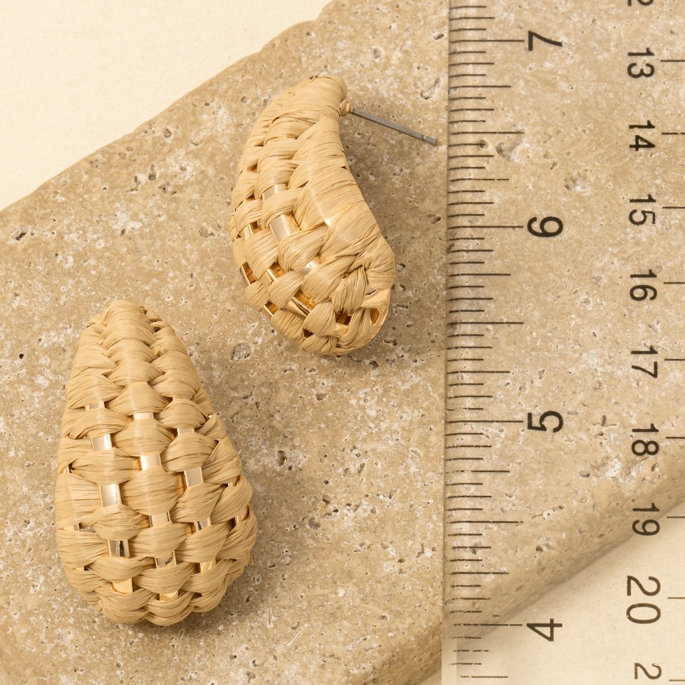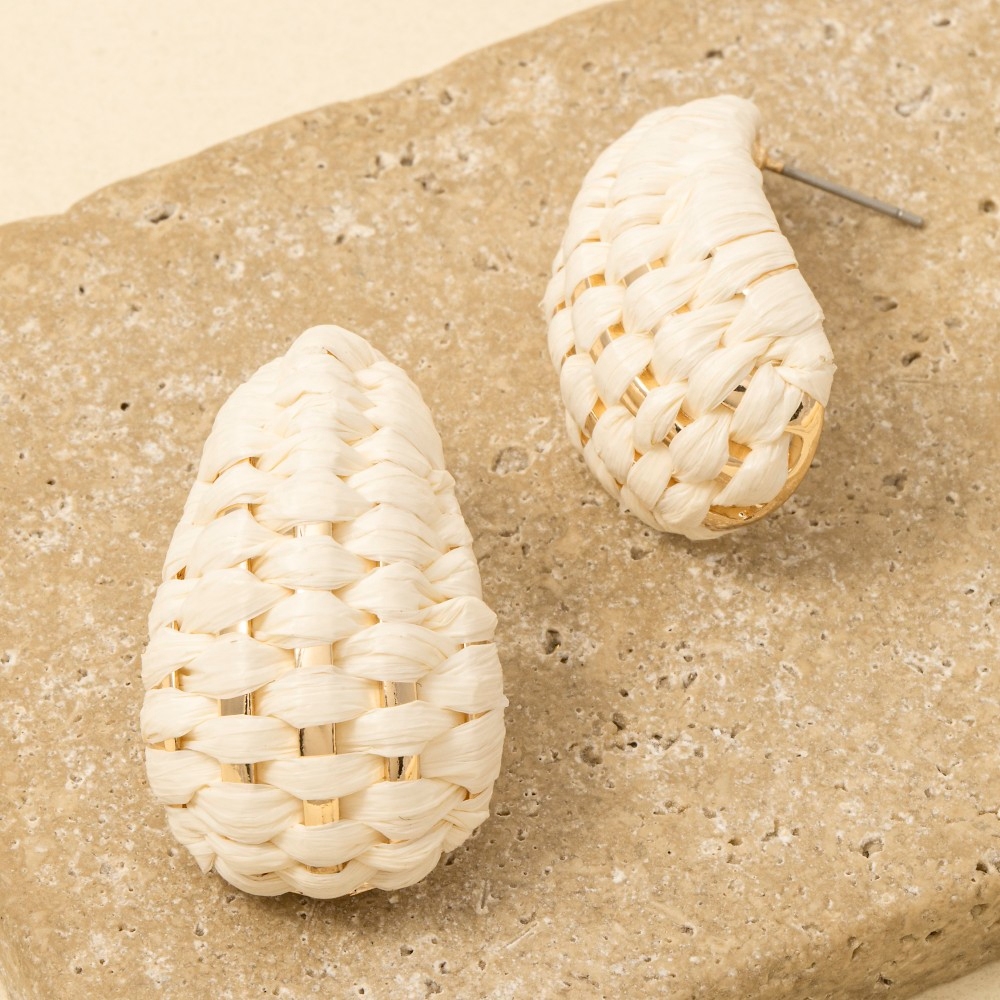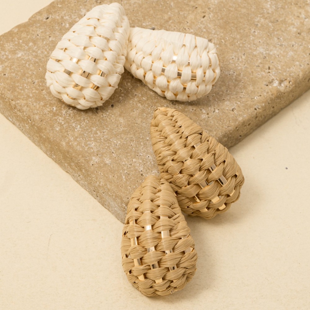• Unleash your inner fashionista, this pair of dangle earrings highlights a special raffia weave teardrop design. Add a dash of sophistication to your look with this versatile pair of dangle earrings, a must-have for fashion enthusiasts. Available in IVY, LBR. This item is sold in packs of 1.
