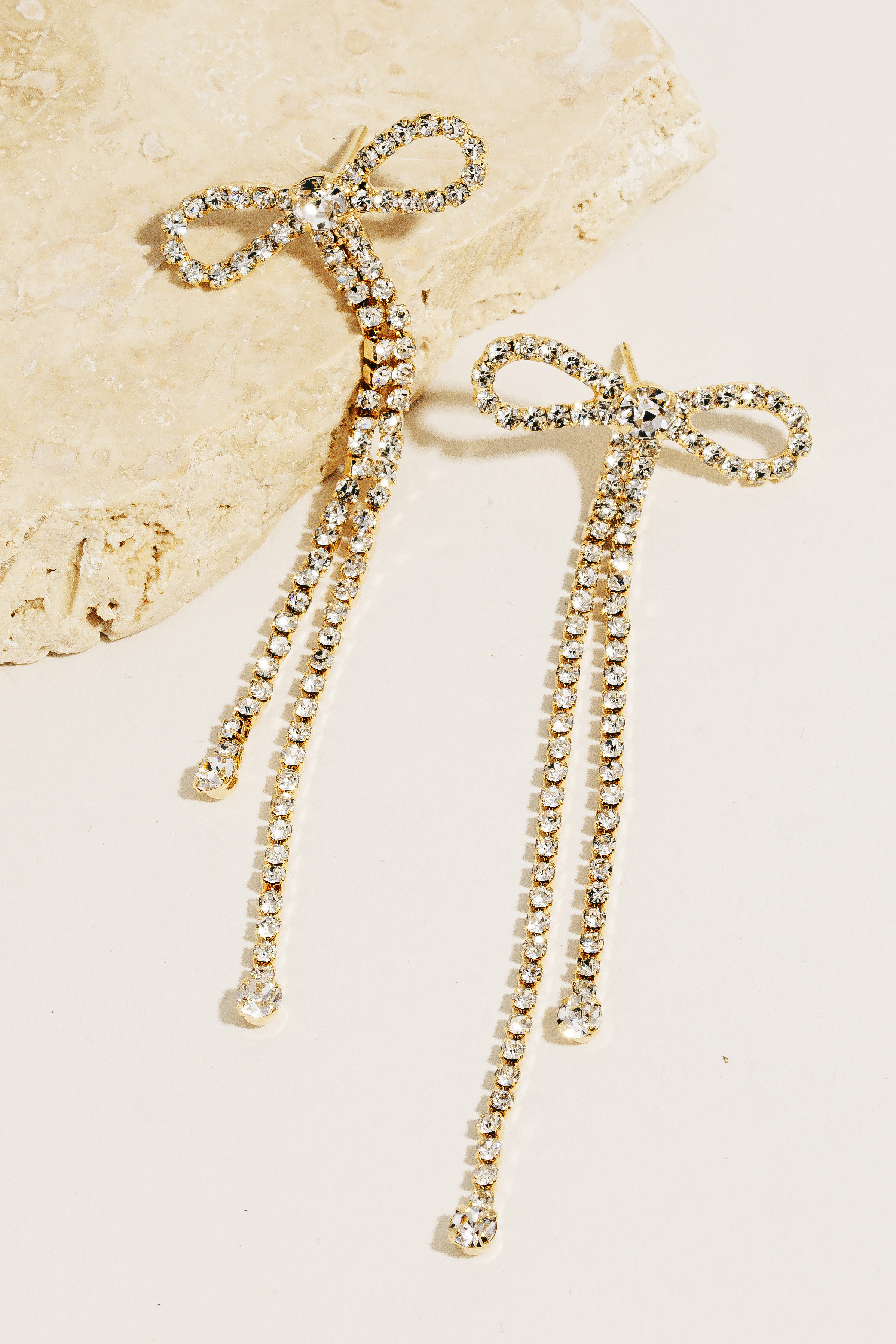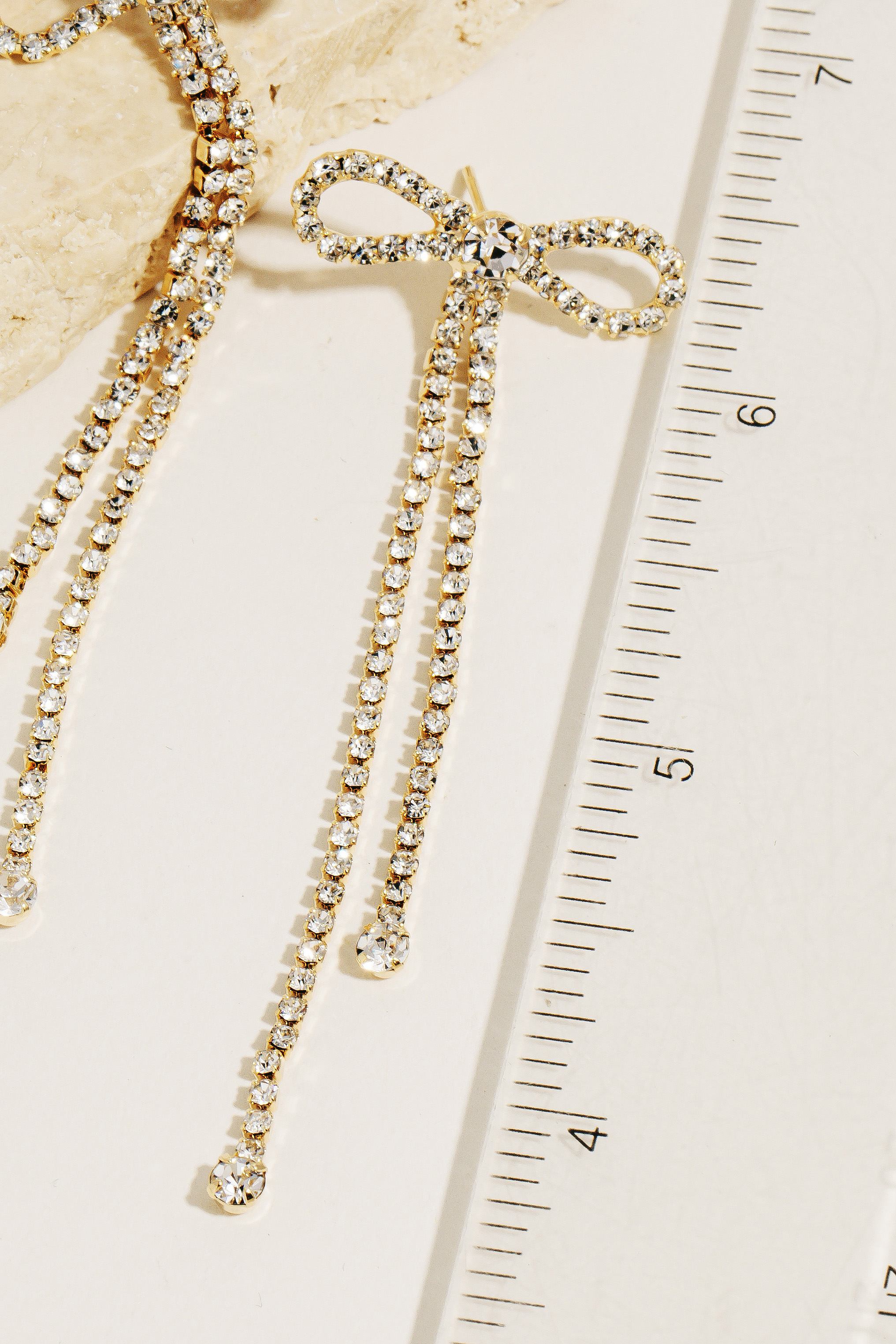 • A versatile piece that can be dressed up or down, this pair of dangle earrings incorporates a remarkable rhinestone bow tie stud design. This accessory is ideal for both casual and formal events, adding a touch of sophistication to any outfit. Available in G and S. This item is sold in packs of 1.