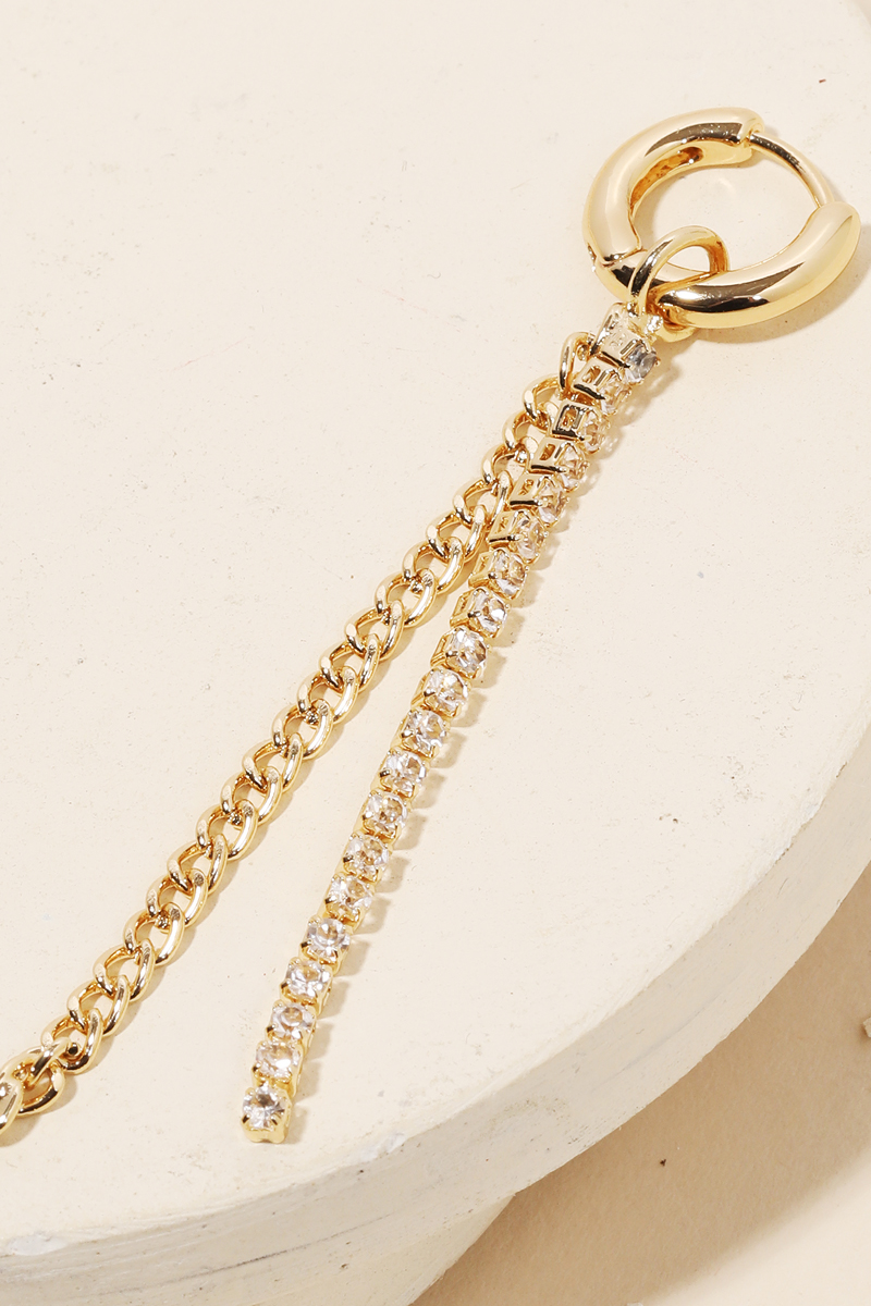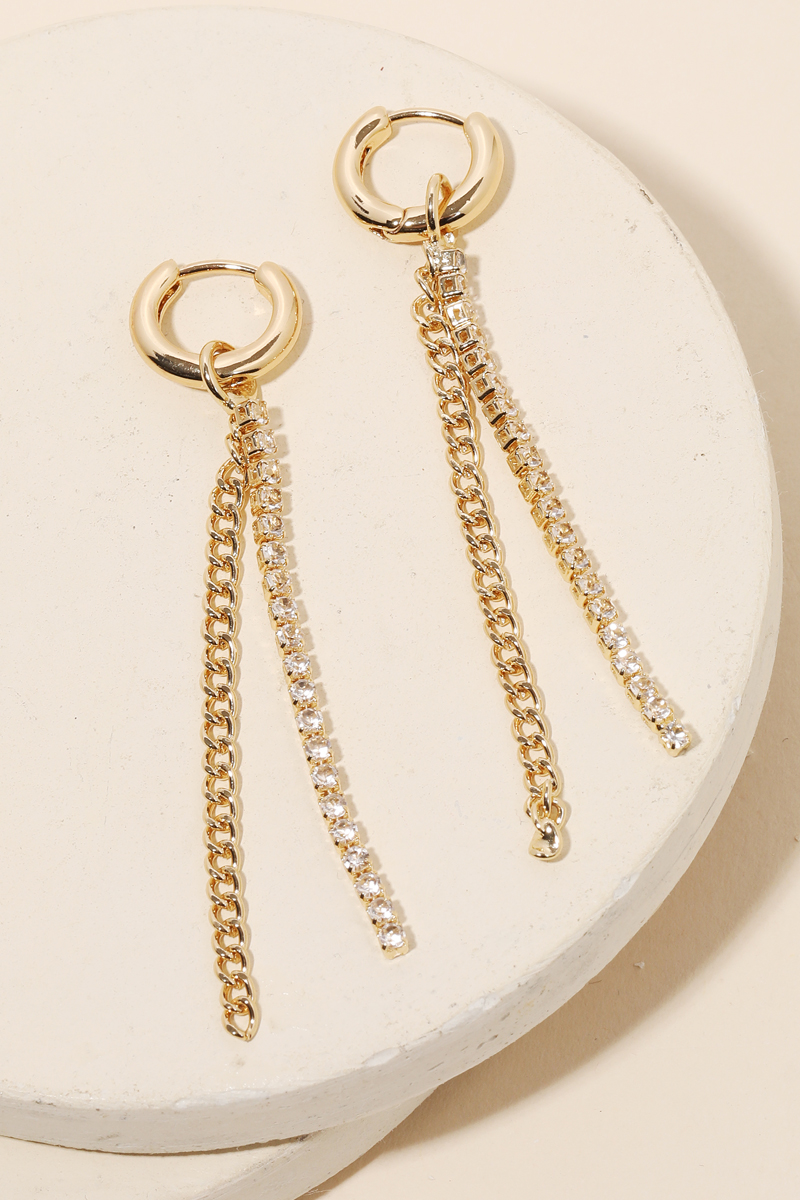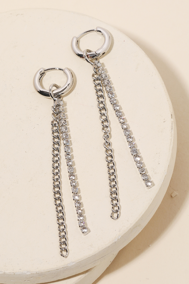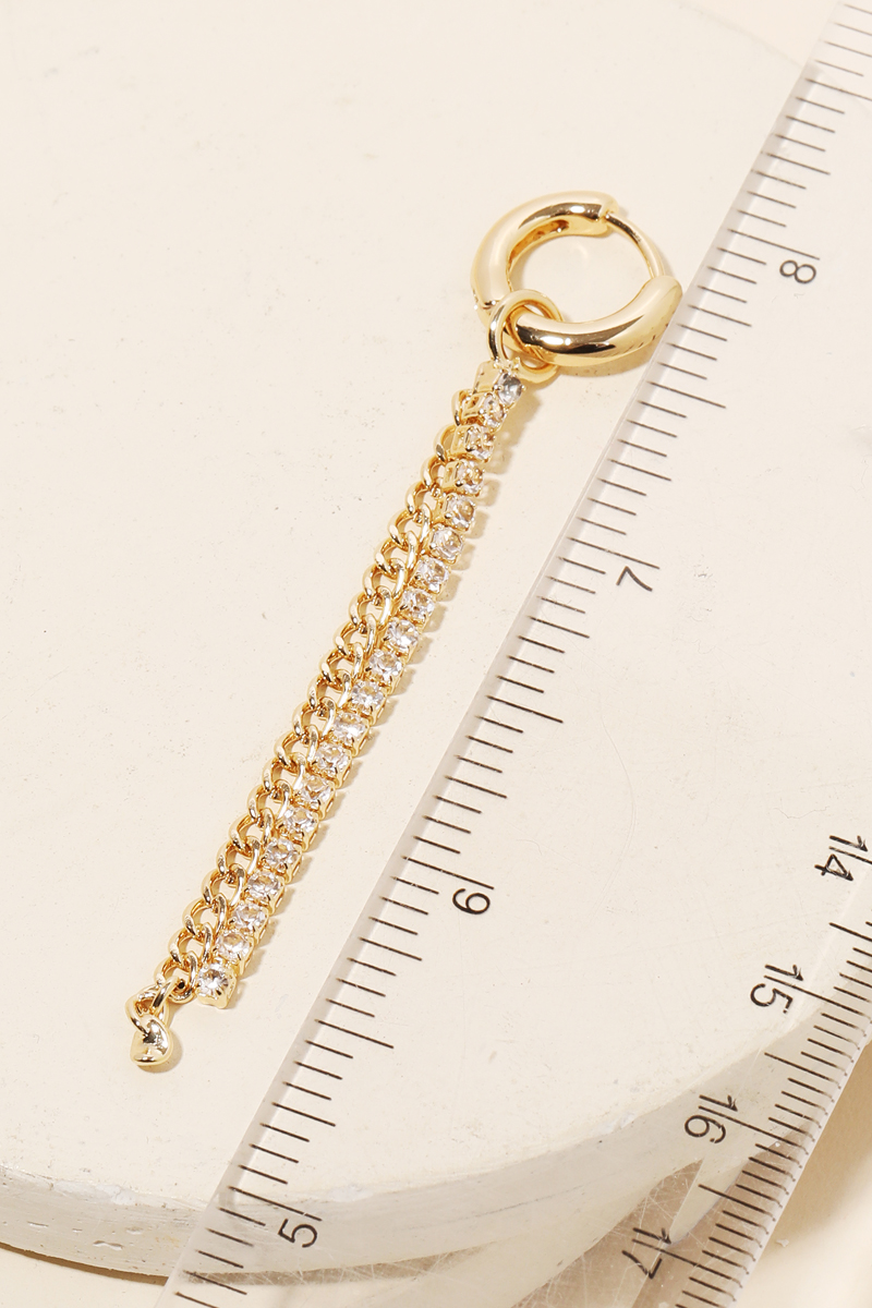 • This is a popular giftable pair of earrings that is designed with a rhinestone chain fringe huggie earrings design. Fits beautifully well in any scenario! Available in CLS and GCL. This item is sold in packs of 1.