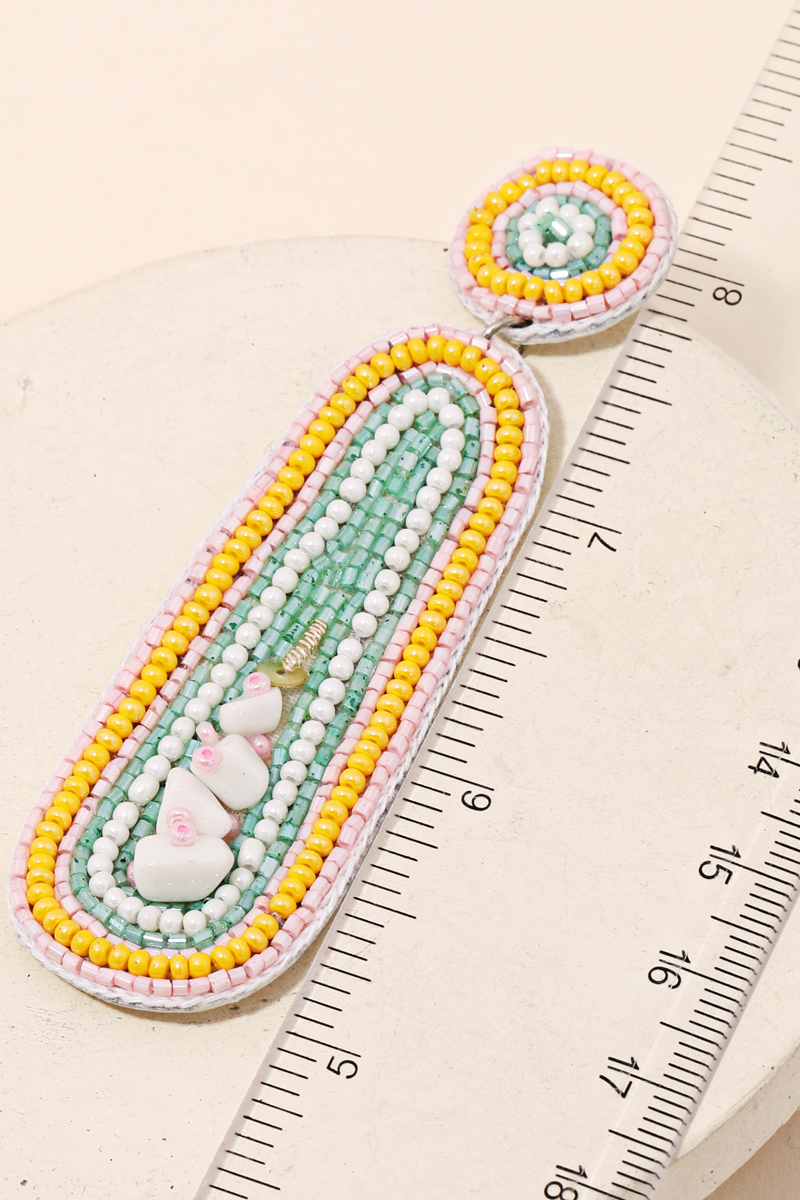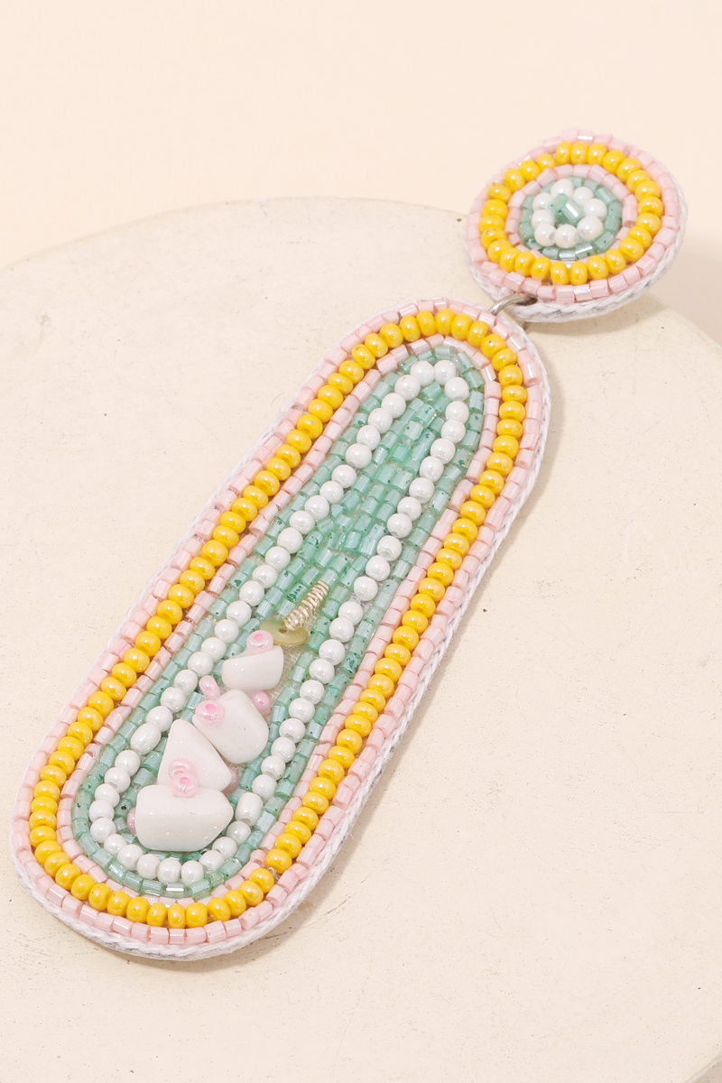 Tiered Sea Shells Beads Tassels Stud Dangle Earrings