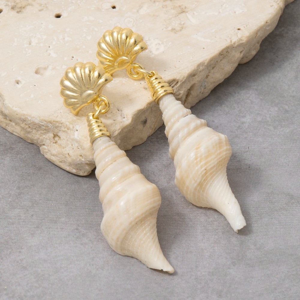 This pair of dangle earrings is made with 50% Brass Metal 50%Real Shell.