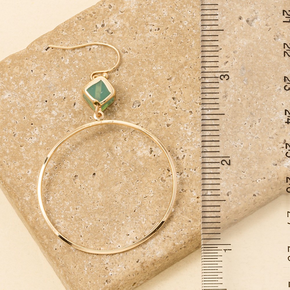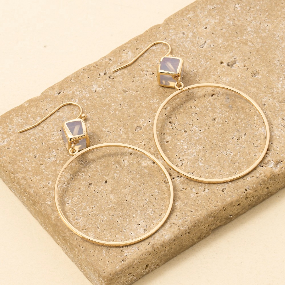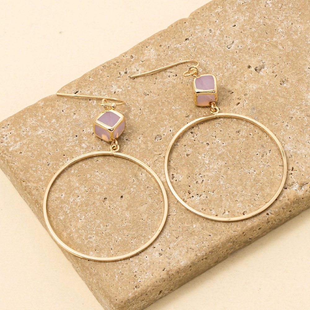 - A bold and daring choice, perfect for those who want to stand out from the crowd, this pair of dangle earrings carries a charming stone cube and hoop design. A stylish pair of dangle earrings that's perfect for complementing your favorite outfit. Available in MINTGD, OPALGD, PKOPALGD. This item is sold in packs of 1.