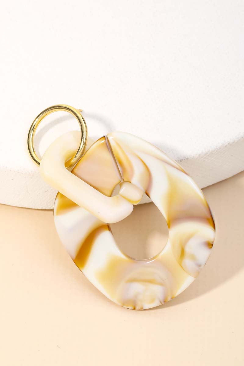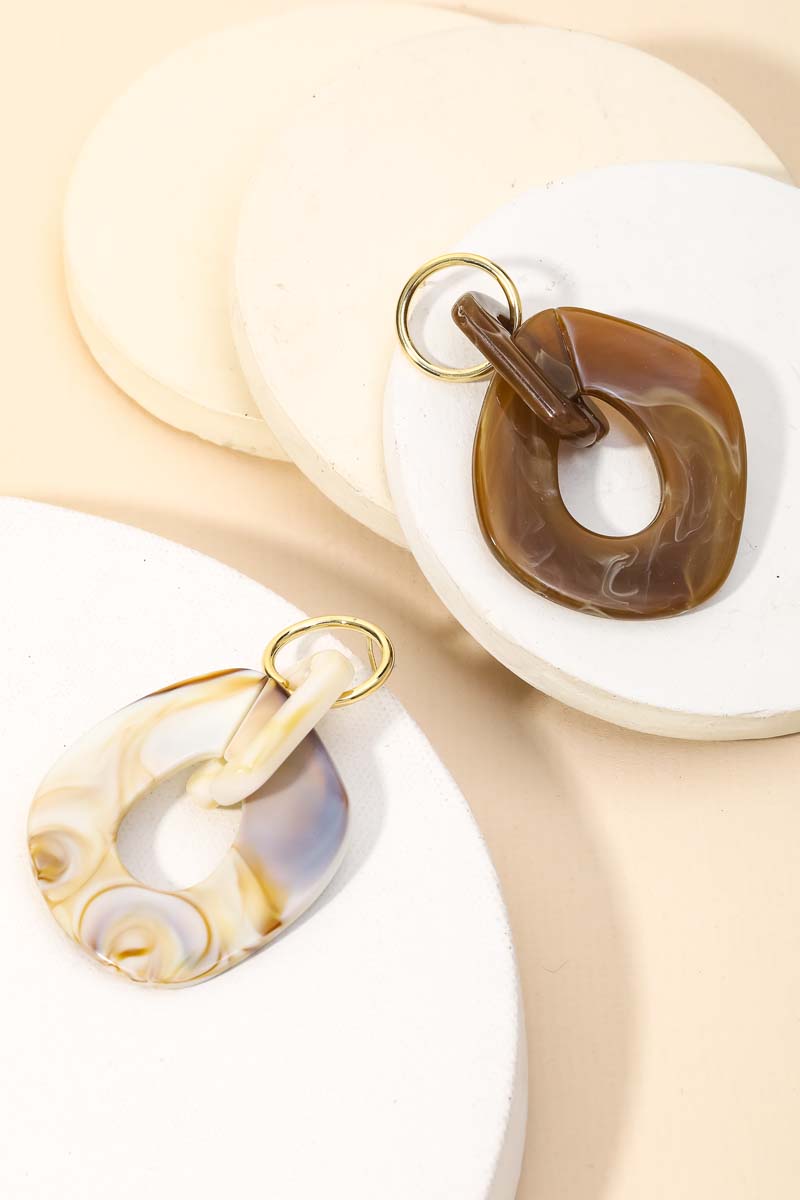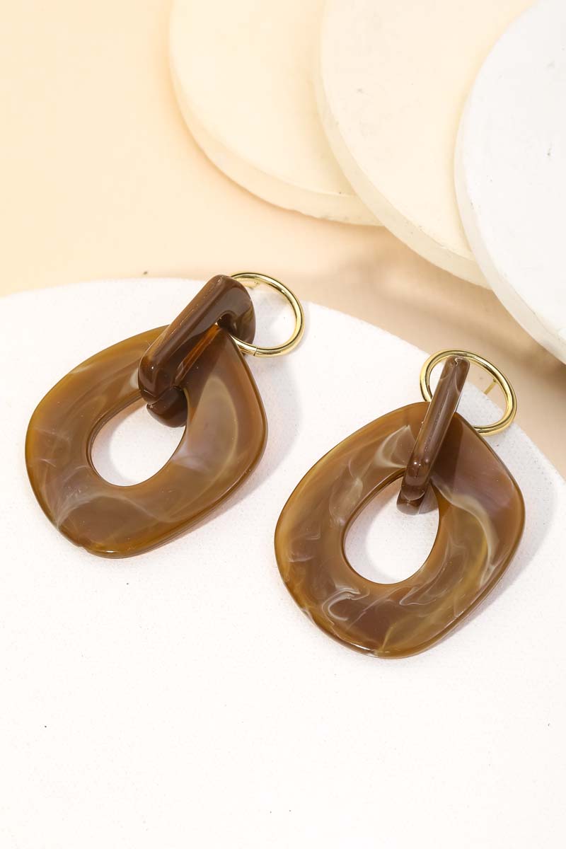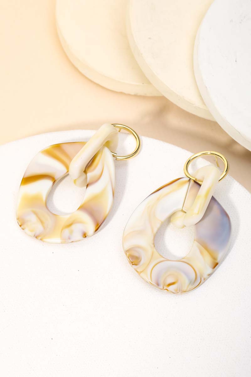 • A perfect in season must have pair of dangle earrings that is designed with a swirl acetate shape dangle earrings design. Accents any outfit perfectly! Available in BR and IV.
