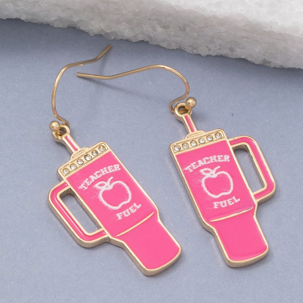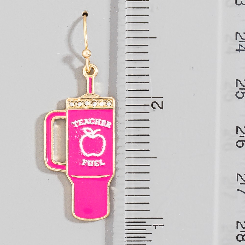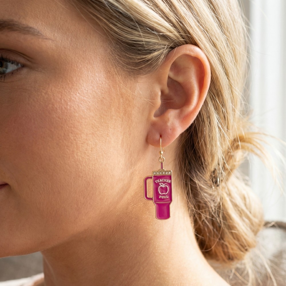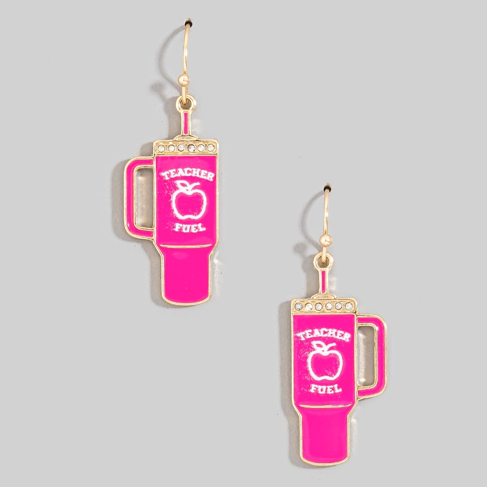 • A bold and daring choice that is sure to impress, this pair of dangle earrings reveals an intricate teacher fuel tumbler design. Discover a new level of fashion versatility as this pair of dangle earrings effortlessly elevates the allure of your attire. Available in HPK. This item is sold in packs of 1.