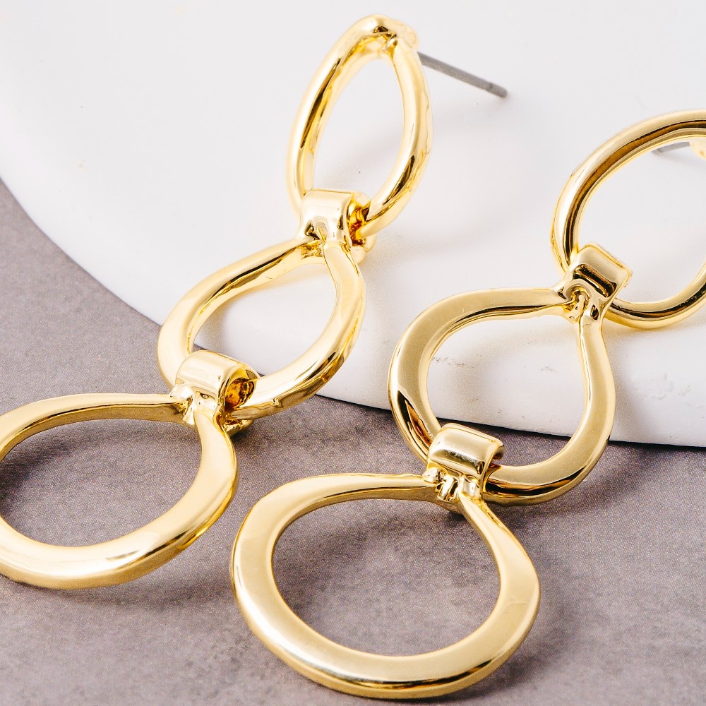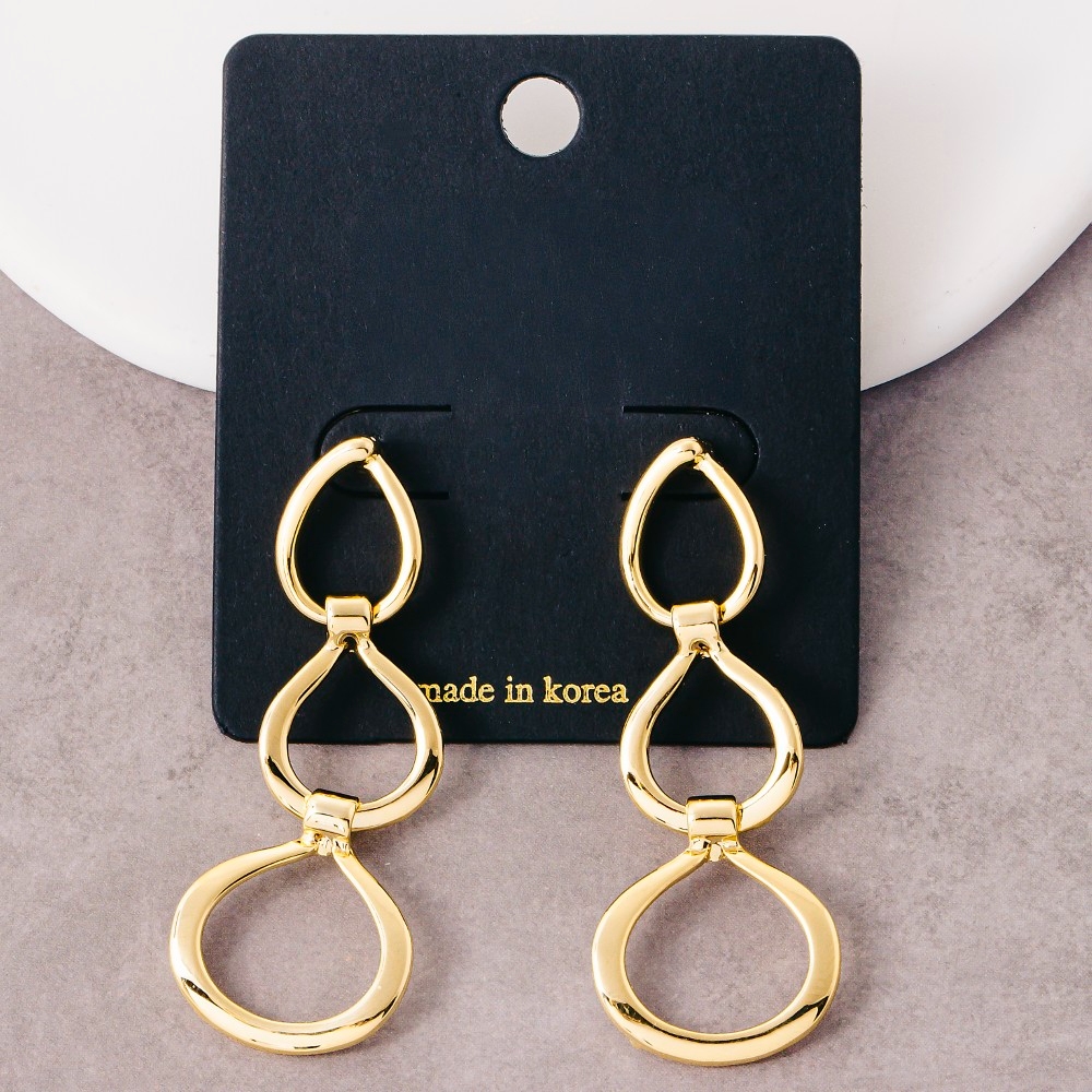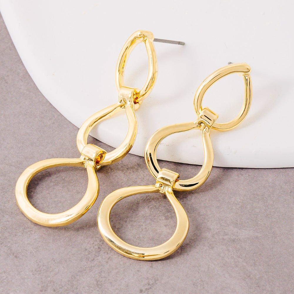 A true work of art, this pair of drop earrings brings a one-of-a-kind three layered circle design. Perfect for adding some texture and dimension to any outfit, this pair of drop earrings is a must-have. Available in G. This item is sold in packs of 1.