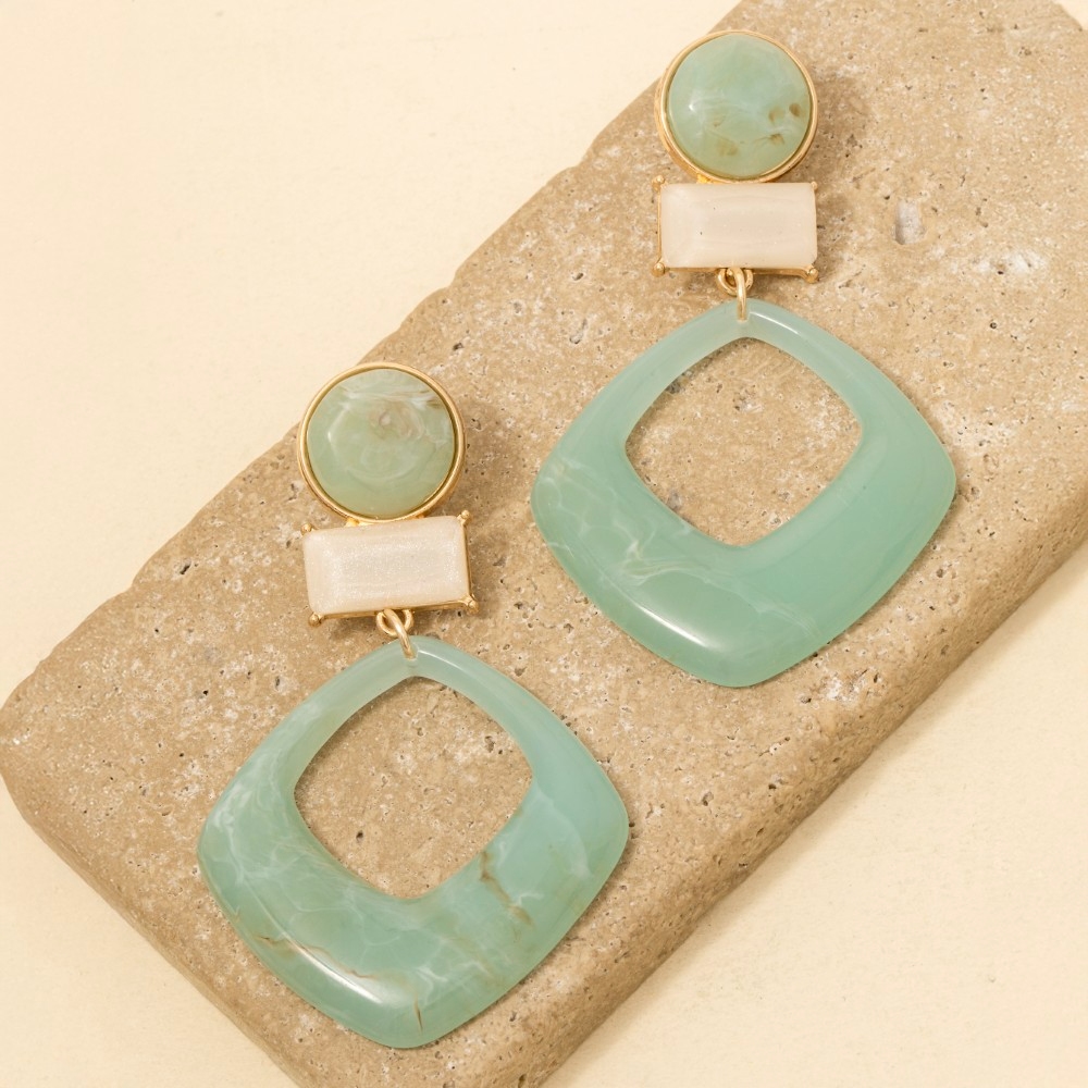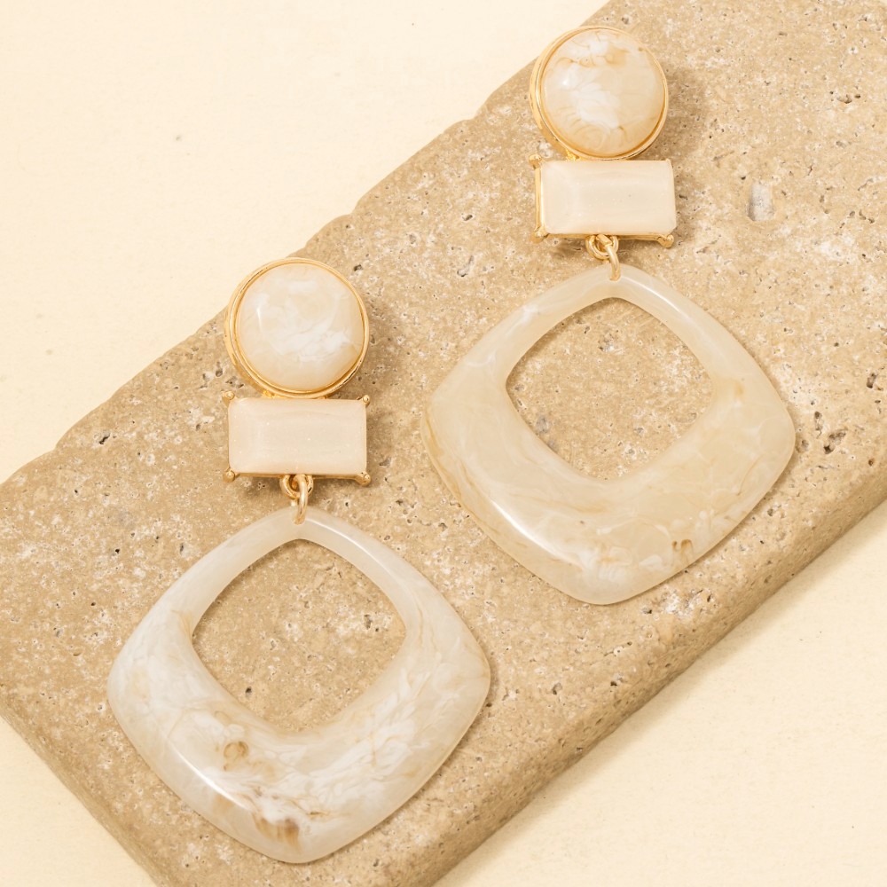 • This piece is both timeless and contemporary, this pair of dangle earrings features a distinct tiered marble resin shapes design. Add a dash of sophistication to your look with this versatile pair of dangle earrings, a must-have for fashion enthusiasts. Available in IV, MT. This item is sold in packs of 1.