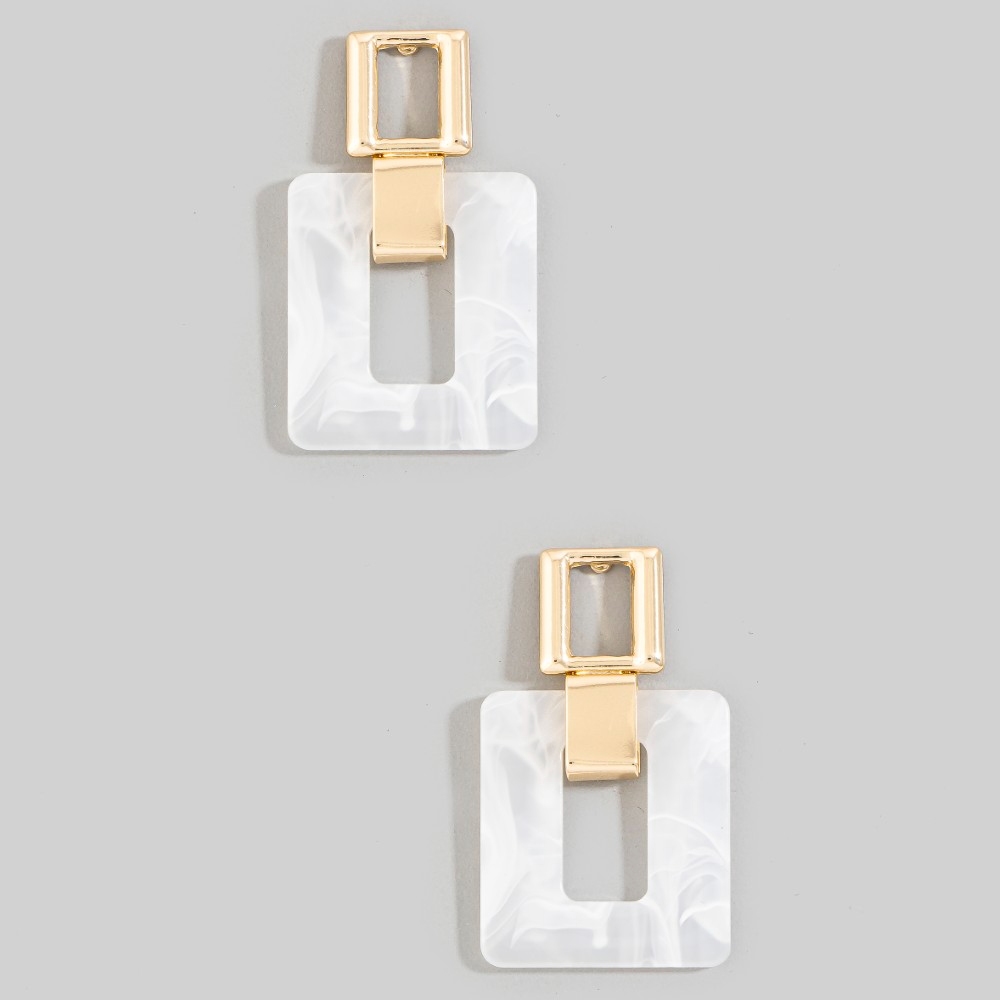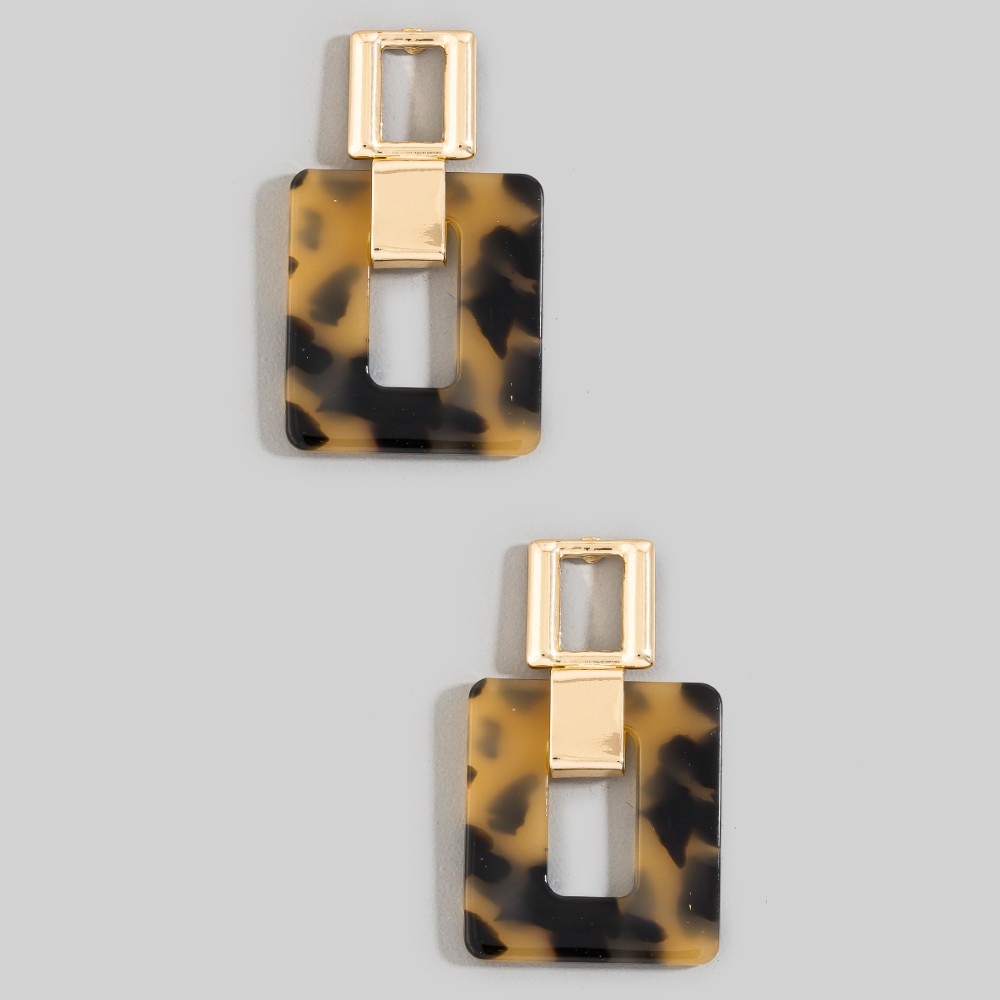 - This piece is both elegant and versatile, this pair of dangle earrings introduces an exceptional tortoise shell rectangle stud design. The perfect way to complete any outfit, whether you're dressing up or keeping it casual. Available in TORT, WHITE. This item is sold in packs of 1.