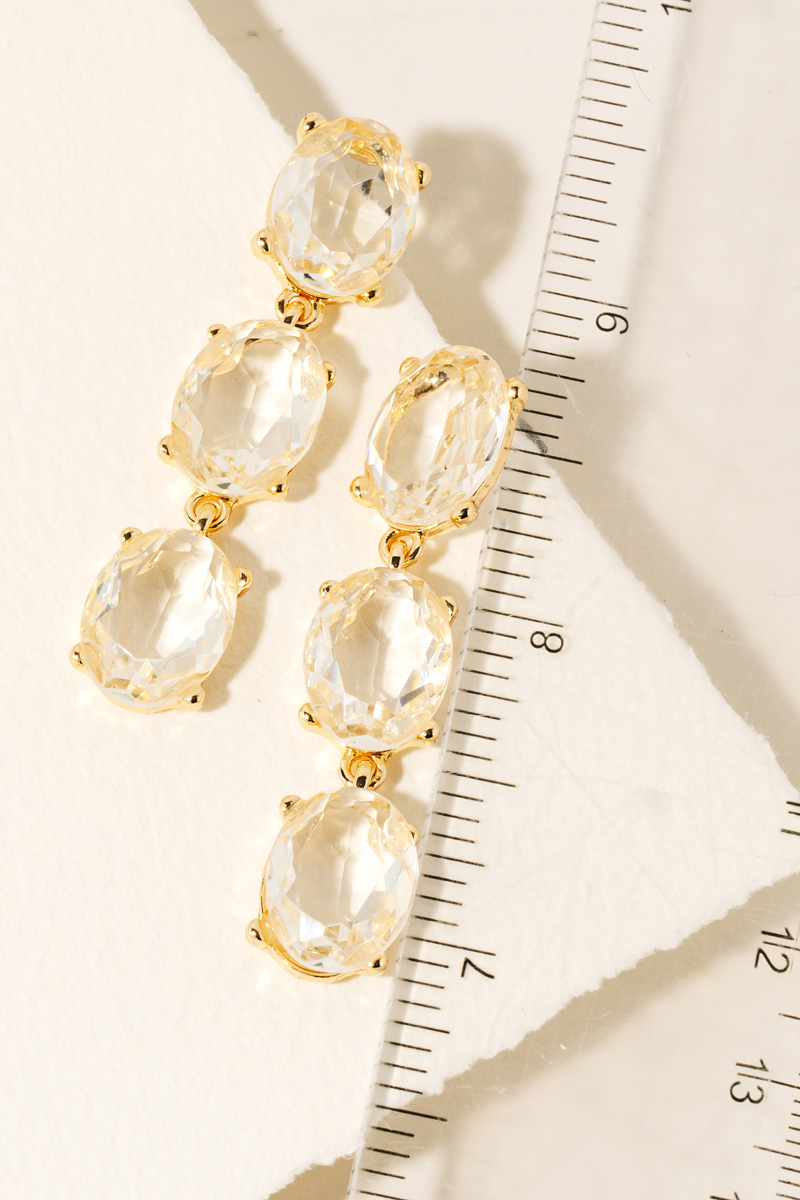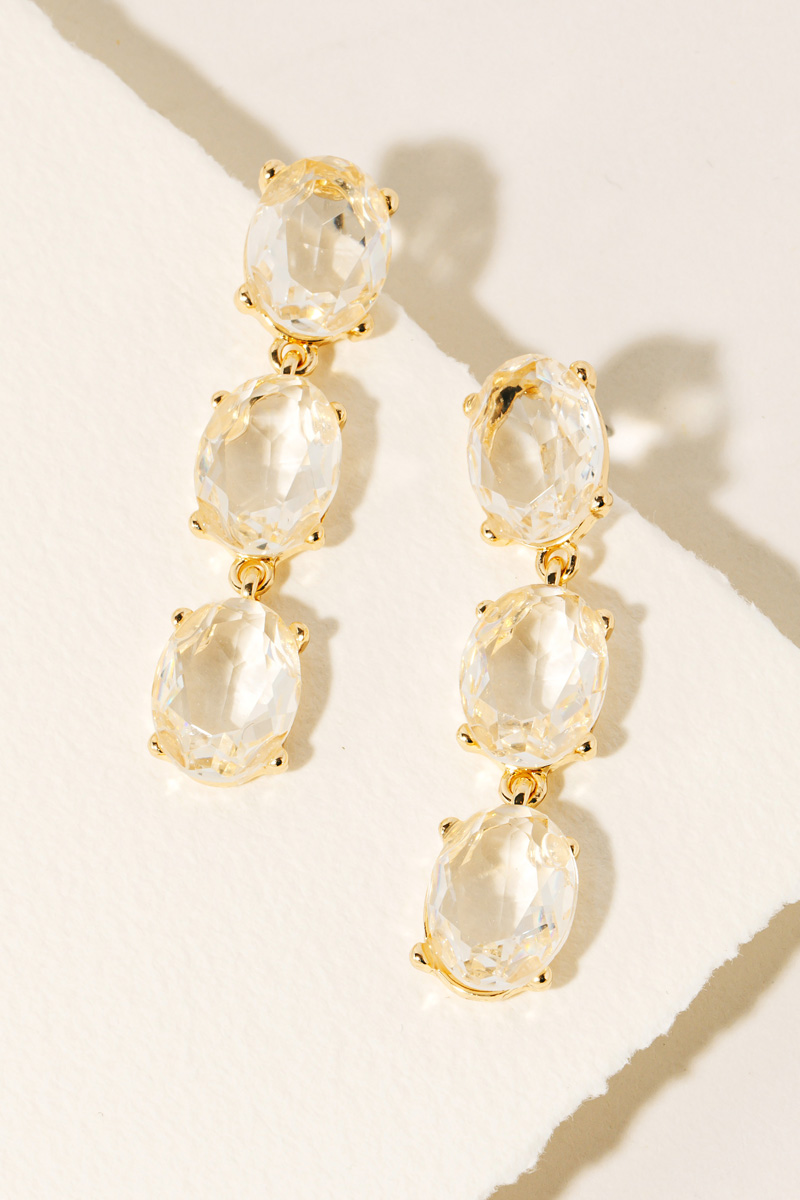 • Bold and daring, this pair of dangle earrings flaunts a luxurious triple faceted gem design. Elevate your fashion IQ with this versatile accessory, designed to seamlessly integrate into any style profile. Available in CLG, CLS and ZZ. This item is sold in packs of 1.