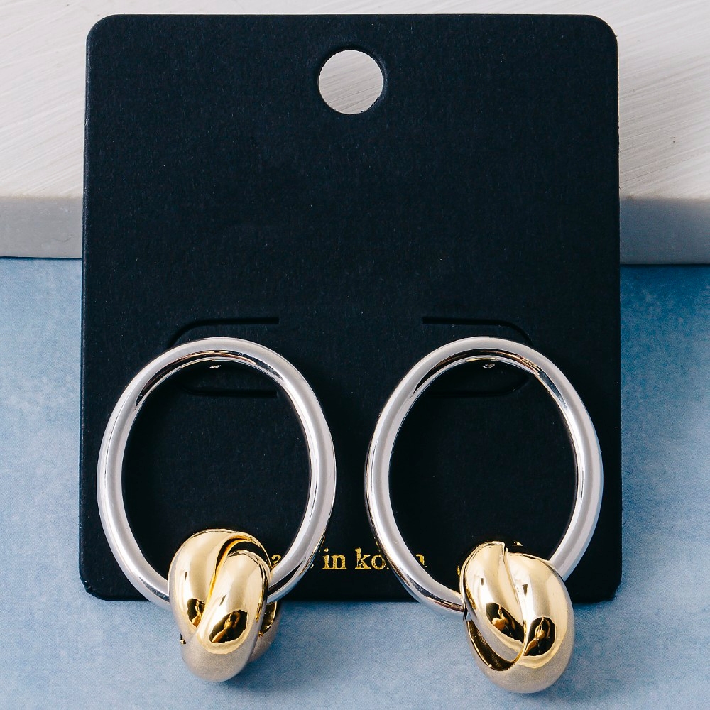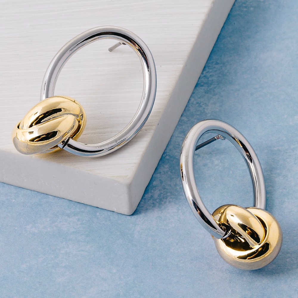 A bold and daring choice, perfect for those who want to stand out from the crowd, this pair of drop earrings carries a charming two tone circle cutout design. Redefine your wardrobe with this versatile pair of drop earrings, a timeless addition that brings an air of sophistication to any look. Available in TT. This item is sold in packs of 1.