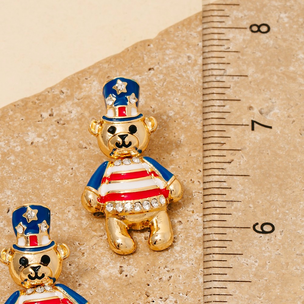 Sleek, modern, and always stylish, this pair of drop earrings flaunts a luxurious usa 4th of july teddy bear stud design. This pair of drop earrings is a great way to add some glamour and sophistication to your outfit. Available in G. This item is sold in packs of 1.