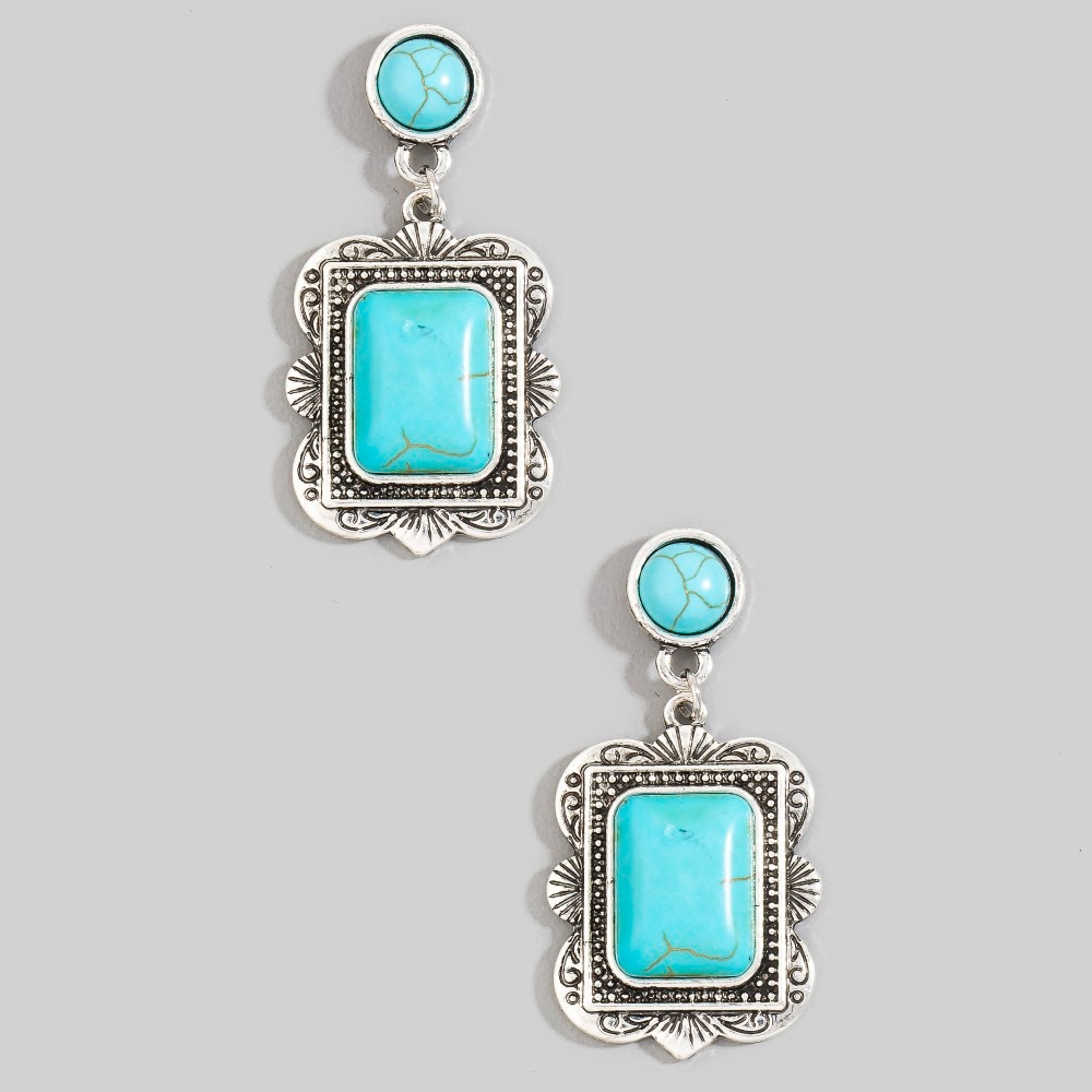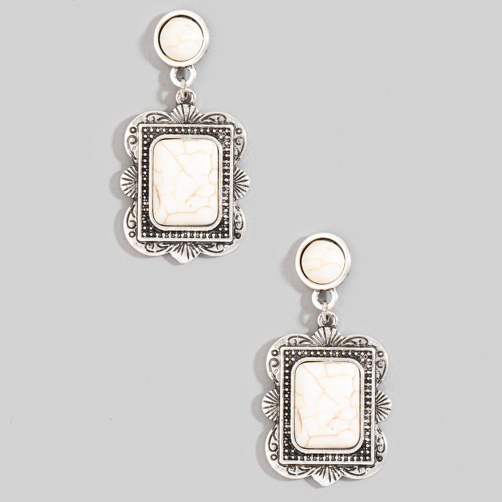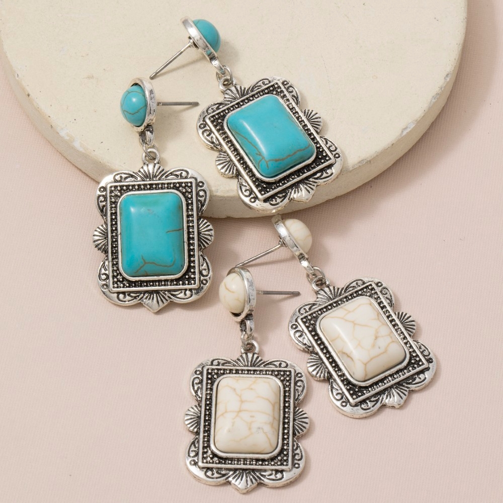 Make a statement, this pair of dangle earrings exudes a refined vintage square stone stud design. Perfect for dressing up your favorite outfit, this pair of dangle earrings is a must-have. Available in TQAS2, WHAS2. This item is sold in packs of 1.