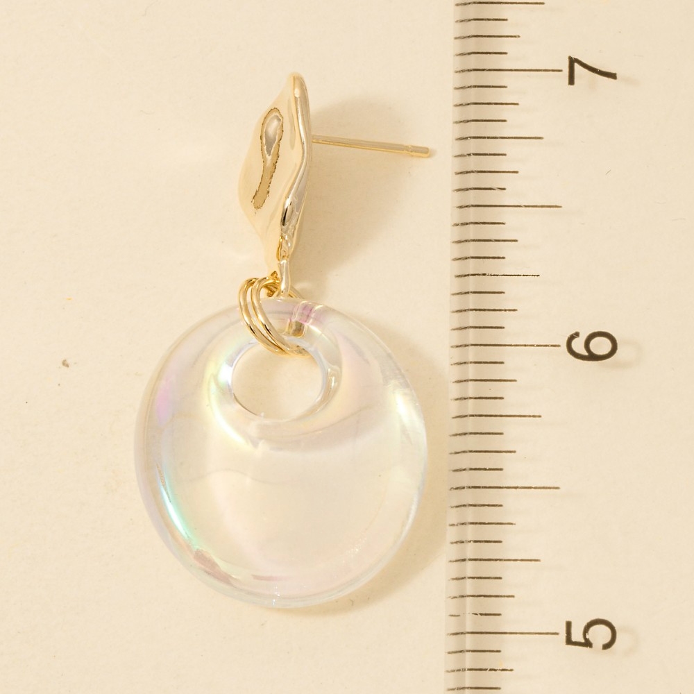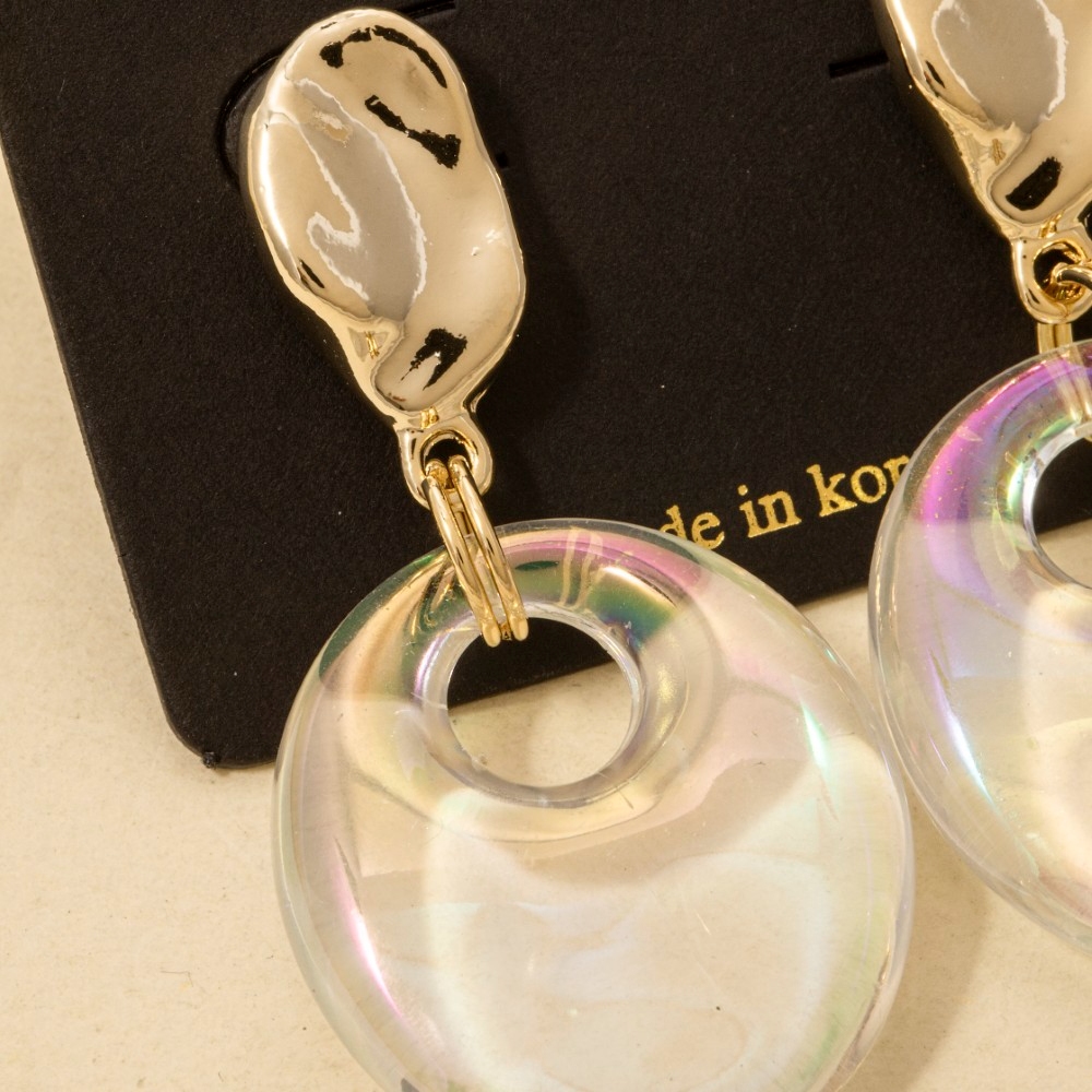 The perfect way to add some edge to your look, this pair of dangle earrings emanates an elegant warped metallic and iridescent oval design. The perfect way to complete any outfit, whether you're dressing up or keeping it casual. Available in G. This item is sold in packs of 1.