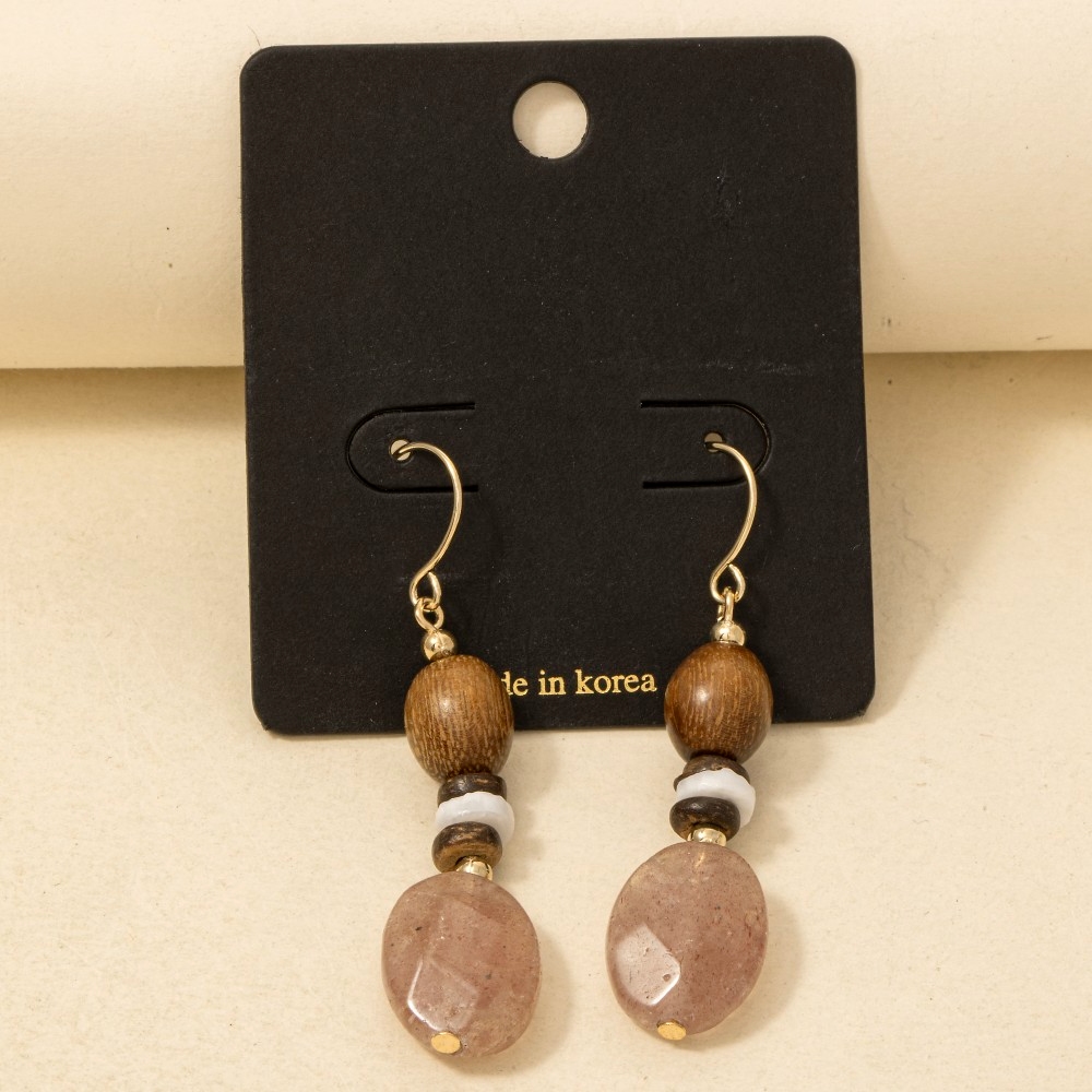 The perfect way to elevate any outfit, this pair of earrings embodies a sophisticated wood and gem beads dangle hook design. A stylish pair of earrings that's perfect for complementing any outfit you wear. Available in BR, MI, WH. This item is sold in packs of 1.
