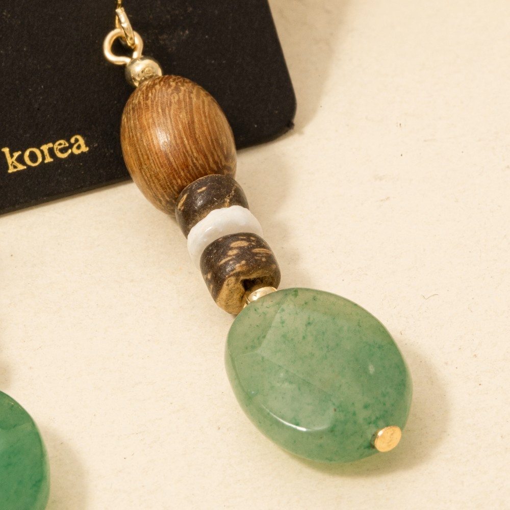 This pair of earrings is made with 10% Brass, 45% Wood and 45% Gemstone.