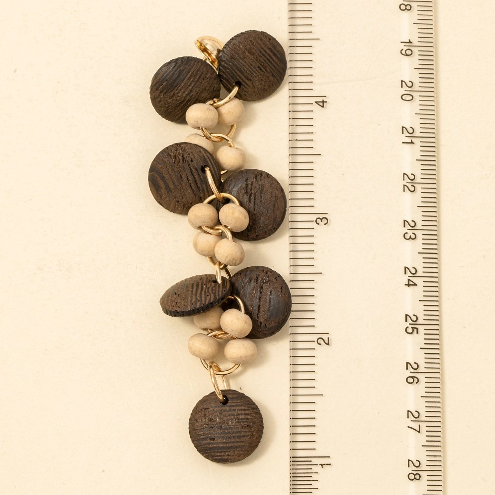 Make a statement, this pair of earrings comes with a special wooden discs and beads dangle chain design. Discover a new level of fashion versatility as this pair of earrings effortlessly elevates the allure of your attire. Available in MU. This item is sold in packs of 1.