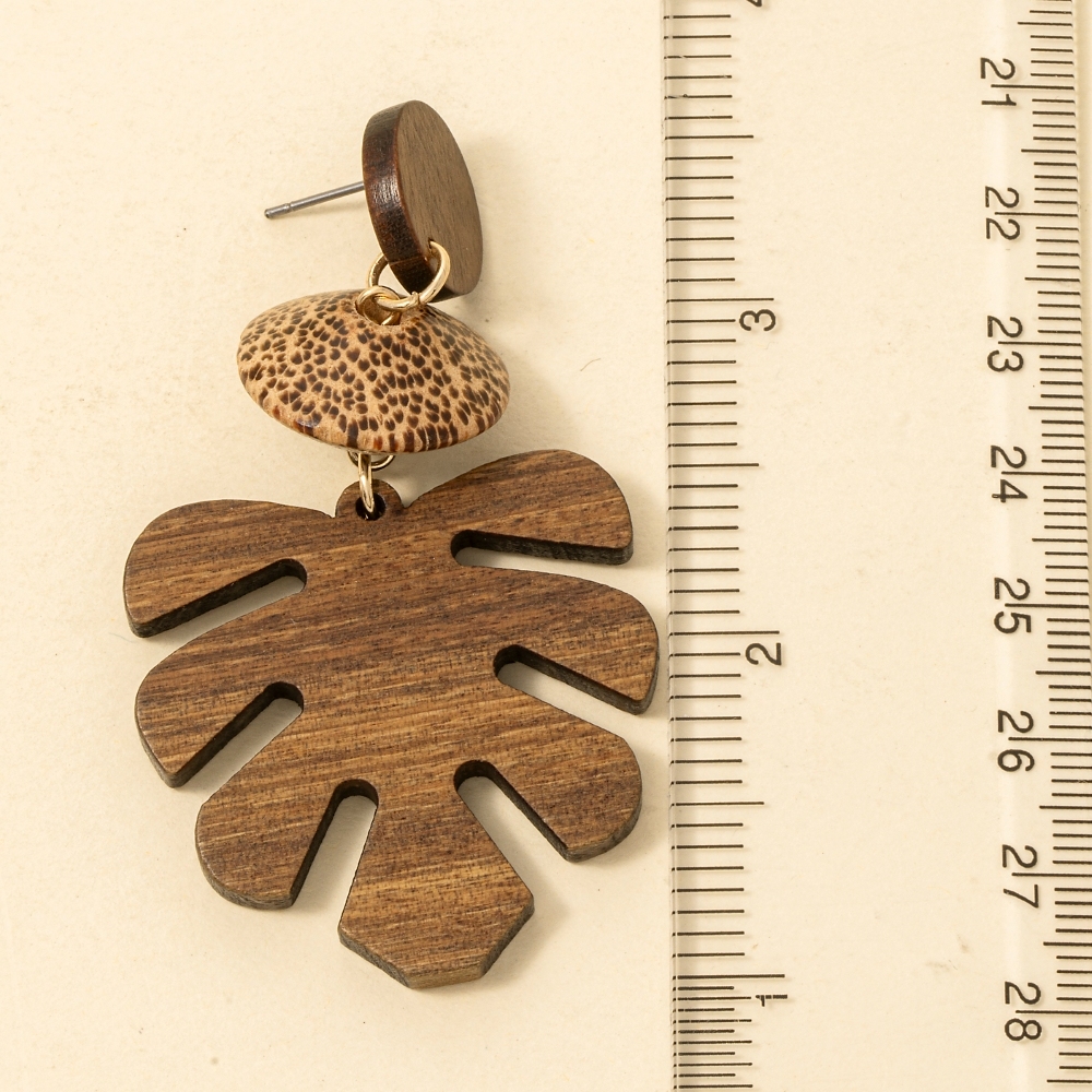- Perfectly versatile and endlessly stylish, this pair of dangle earrings reveals an intricate wooden monstera leaf design. Experience the transformative power of this versatile pair of dangle earrings, effortlessly enhancing the overall aesthetic of your outfit. Available in BR. This item is sold in packs of 1.