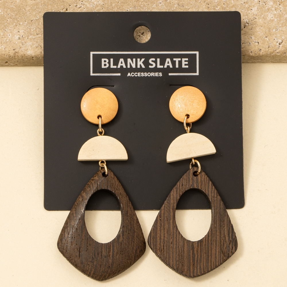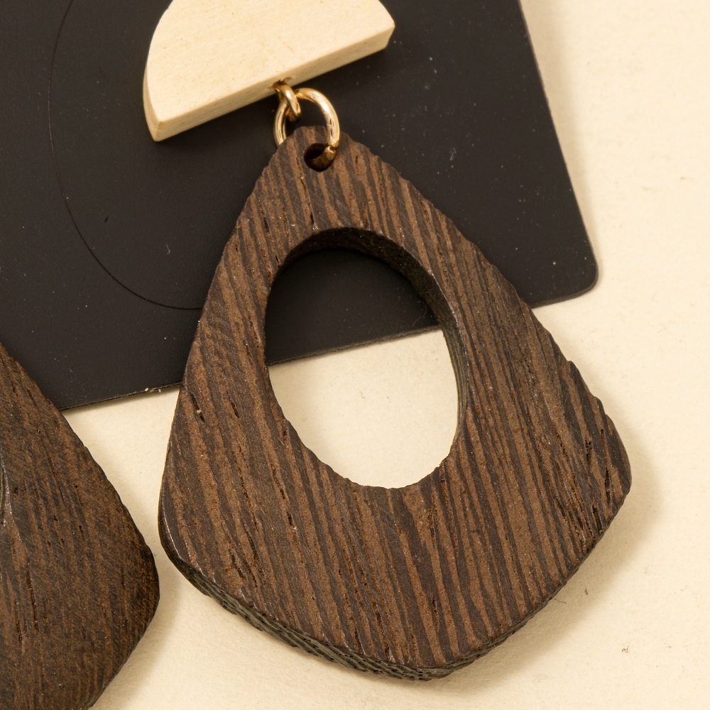 - This piece is designed to make a statement, this pair of dangle earrings showcases a breathtaking wooden teardrop design. This pair of dangle earrings is a great way to add some flair to your outfit without going over the top. Available in BR. This item is sold in packs of 1.