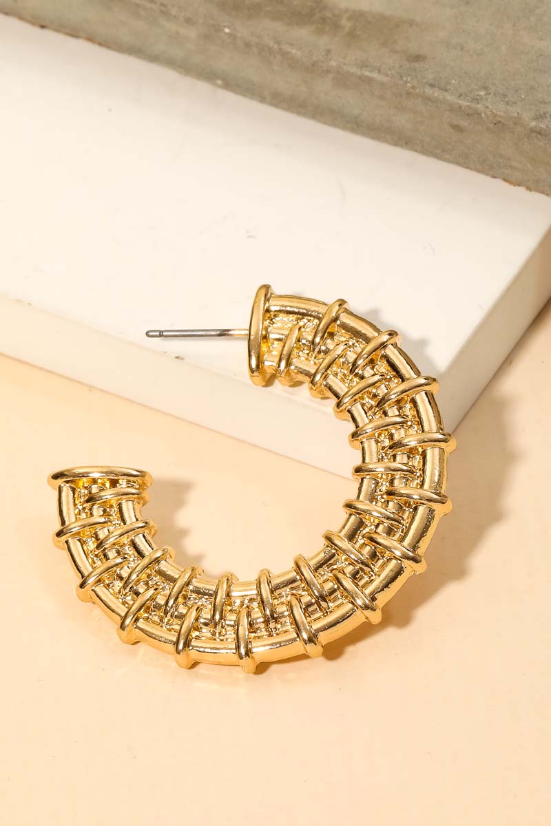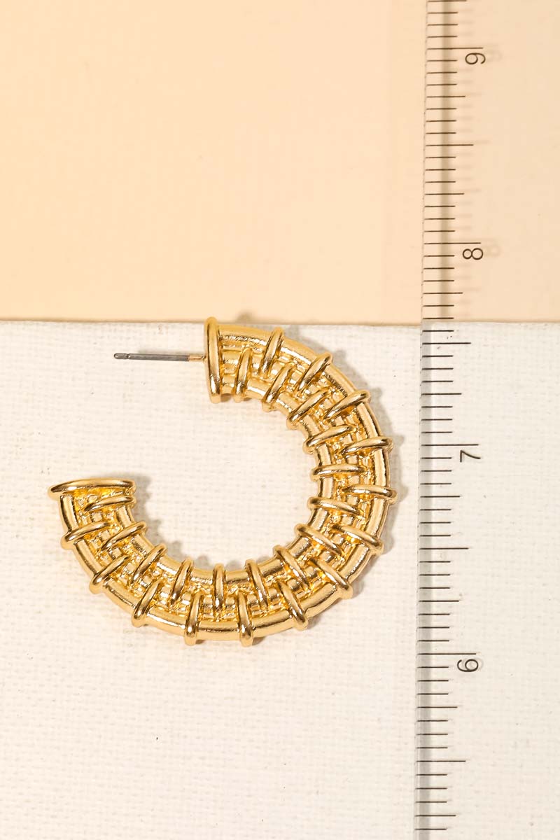 Add some edge to your look, this pair of hoop earrings showcases an alluring flat metallic textured design. This item is perfect for anyone who loves to accessorize and add some personality to their outfits. Available in G. This item is sold in packs of 1.