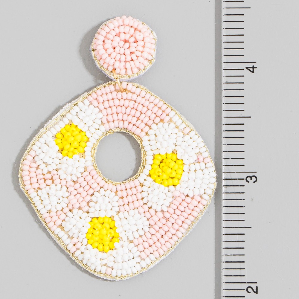 Unleash your inner fashionista, this pair of drop earrings showcases an alluring floral seed beaded design. Elevate your outfit with this stylish pair of drop earrings that's perfect for any occasion. Available in BK,BL,FU,MT and BK. This item is sold in packs of 1.