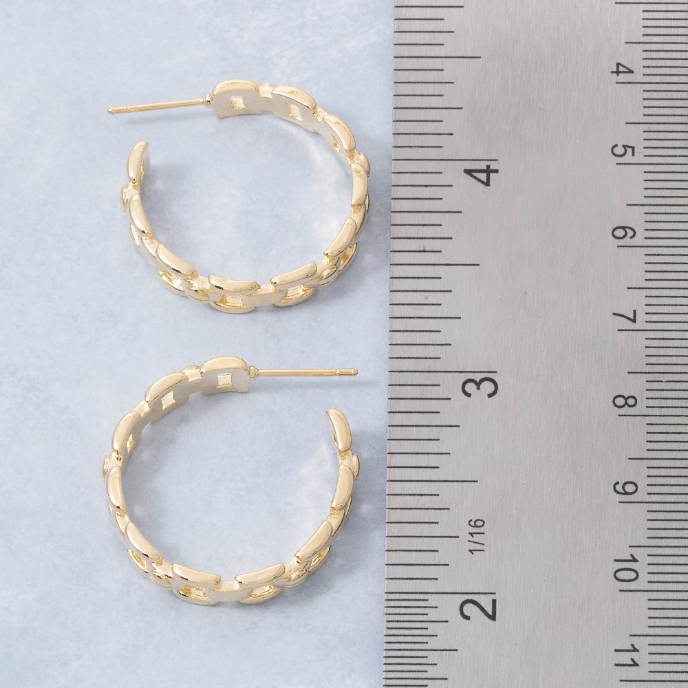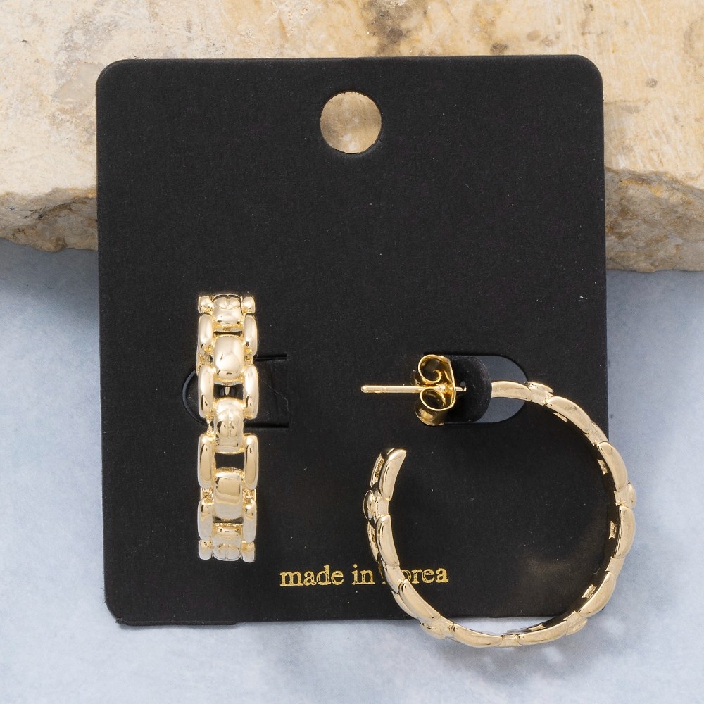 The perfect way to complete any outfit, this pair of hoop earrings contains a special gold chain link textured design. Unleash the power of style with this versatile pair of hoop earrings, perfect for enhancing the charm of your wardrobe. This item is sold in packs of 12.