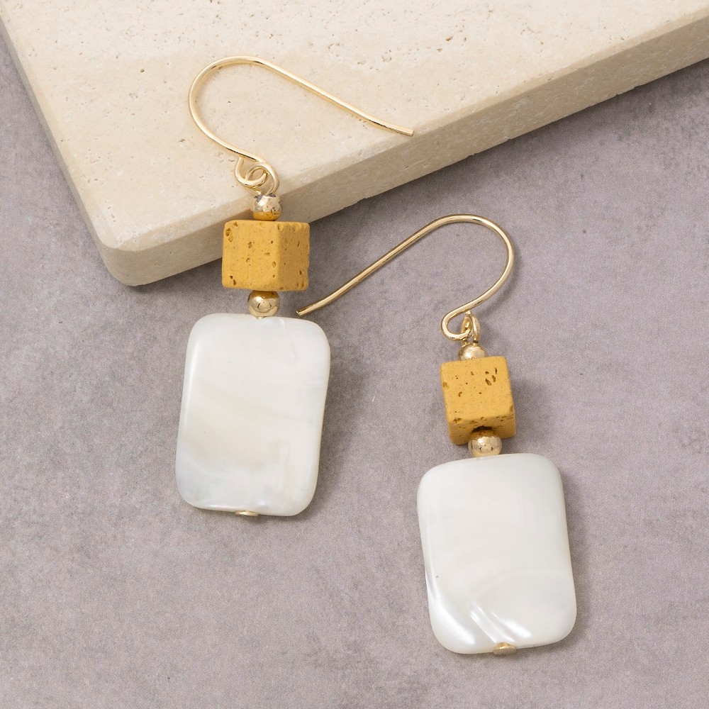 The perfect way to elevate any outfit, this pair of drop earrings adds a distinctive gold cube bead mother of pearl design. Take your style to the next level by incorporating this versatile pair of drop earrings, a key element in achieving a polished look. Available in GOLD. This item is sold in packs of 1.
