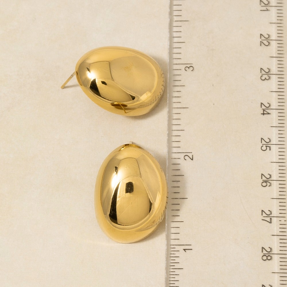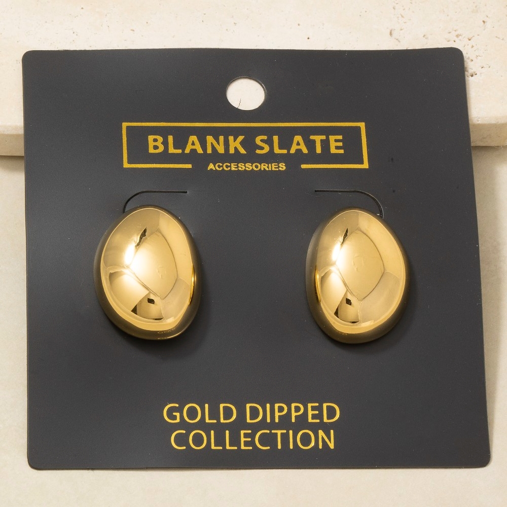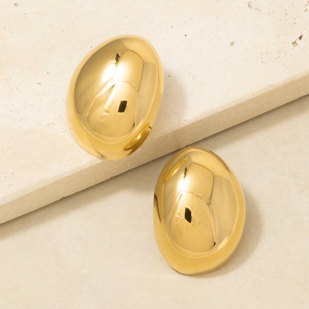 • The perfect way to complete any outfit, this pair of stud earrings features an exceptional gold dipped chunky oval dome design. Unleash the potential of your wardrobe with this versatile pair of stud earrings, ensuring a touch of elegance in every ensemble. Available in G. This item is sold in packs of 1.