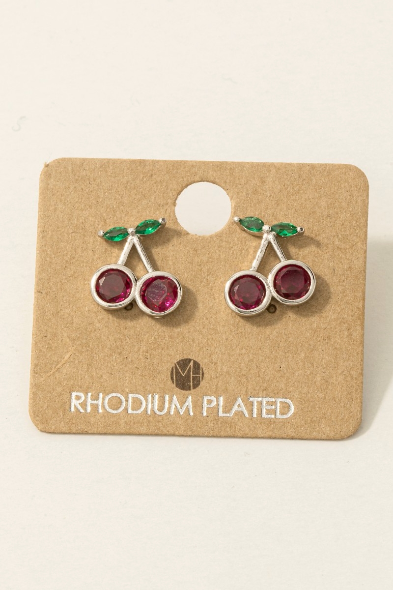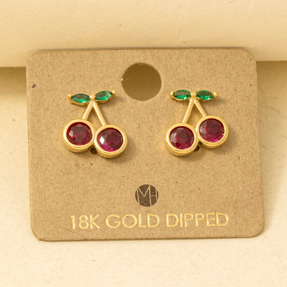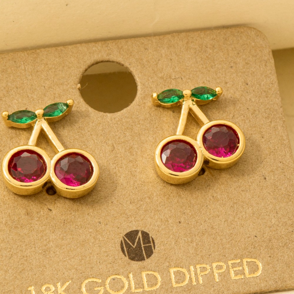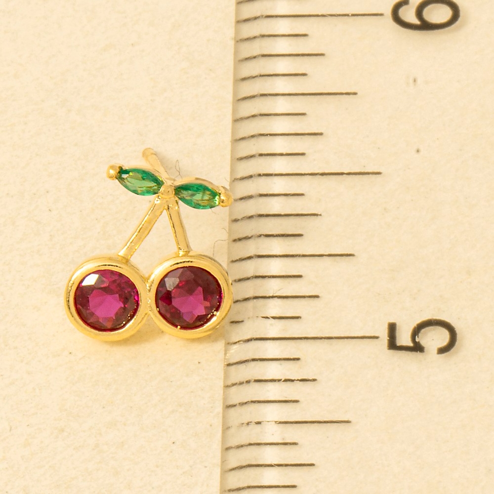 Perfect for any occasion, from casual to formal, this pair of stud earrings incorporates a remarkable gold dipped cubic zirconia cherry design. Transform your outfit into a fashion masterpiece with this versatile pair of stud earrings, an essential for the style-conscious individual. Available in G, S. This item is sold in packs of 1.