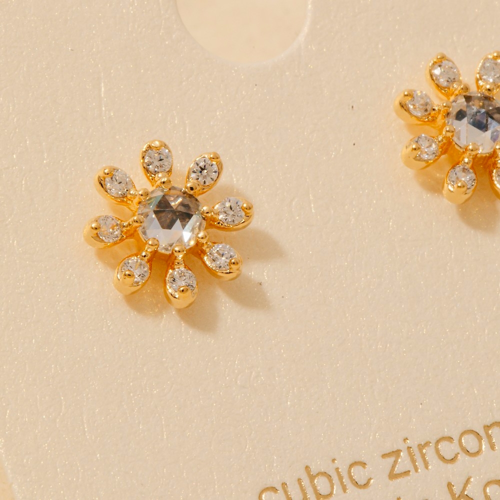 Bold, daring, and endlessly stylish, this pair of stud earrings displays a unique gold dipped cubic zirconia flower design. This versatile pair of stud earrings adds a touch of elegance to any outfit. Available in G, S. This item is sold in packs of 1.