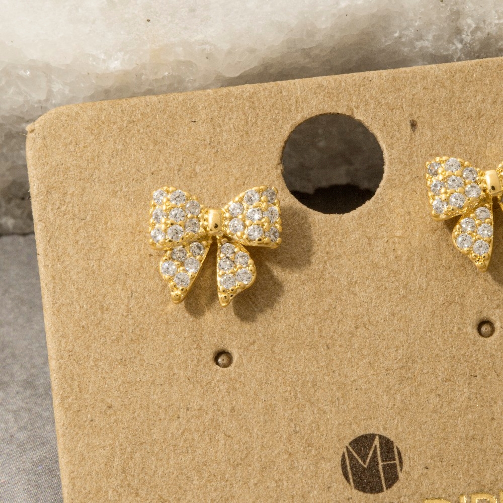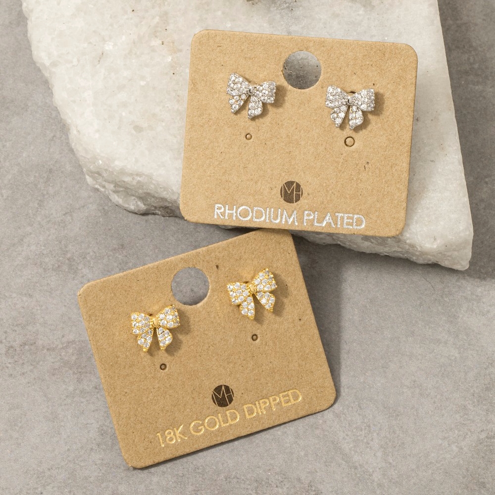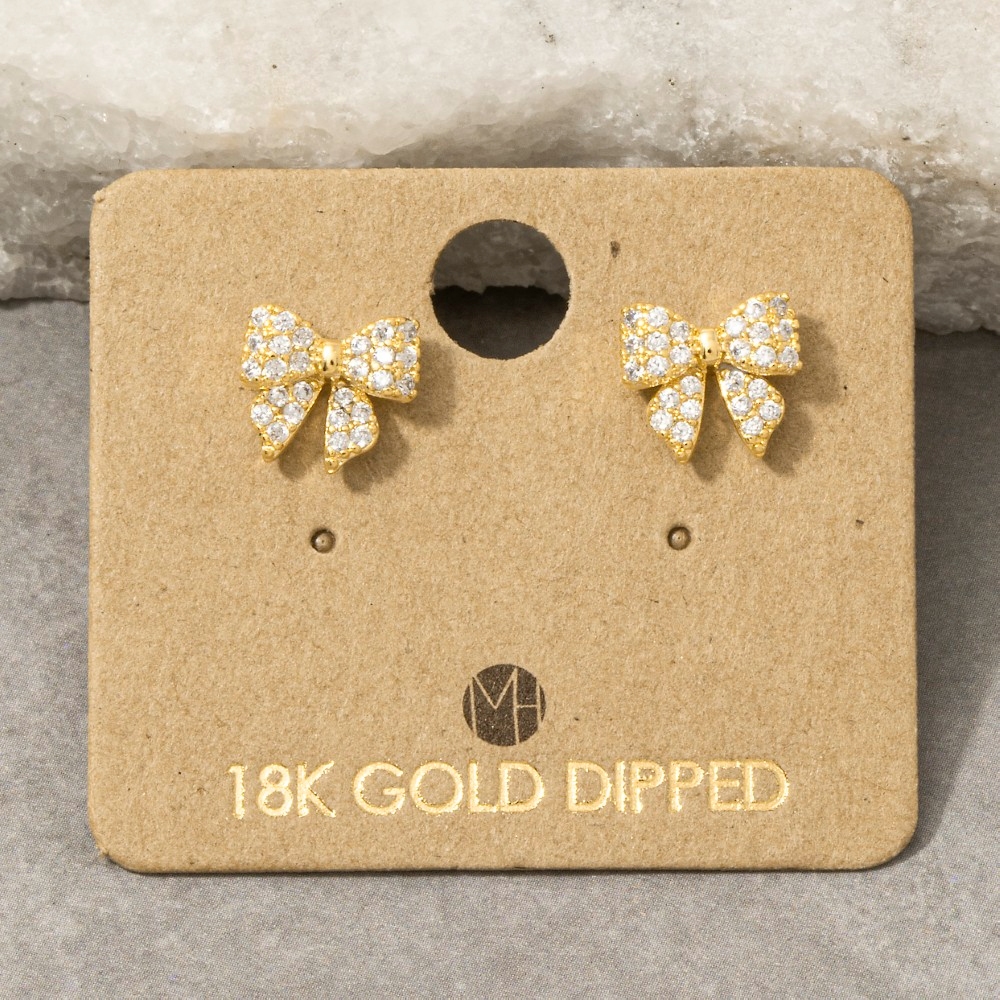 • A timeless piece that will never go out of style, this pair of stud earrings comes with a special gold dipped cubic zirconia pave ribbon design. Elevate your fashion statement with this versatile pair of stud earrings, adding a touch of glamour to your everyday look. Available in G, S. This item is sold in packs of 1.