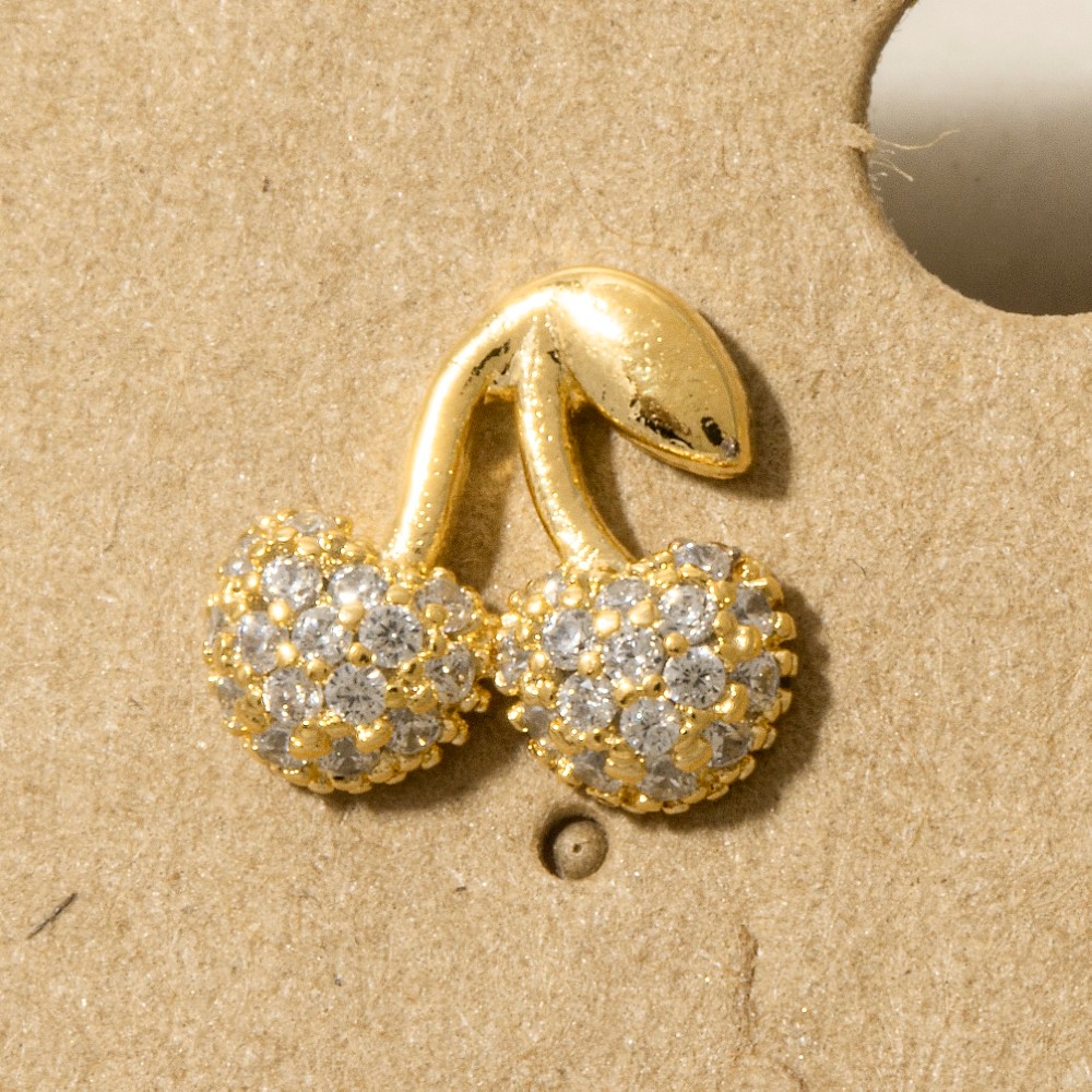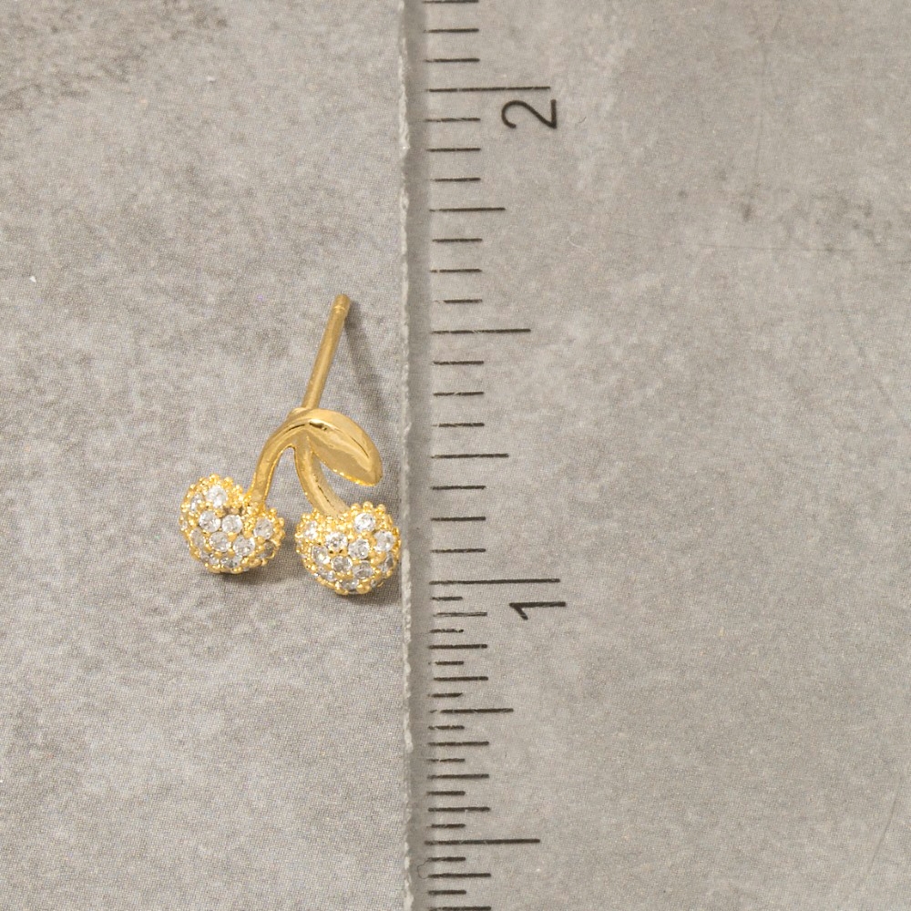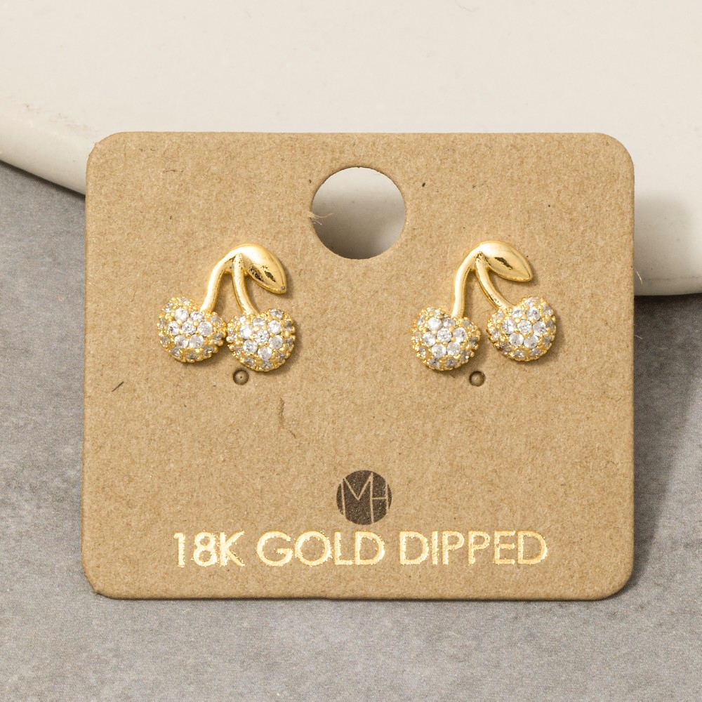 A stunning addition to any jewelry collection, this pair of stud earrings encompasses a grand gold dipped cubic zirconia pave cherry design. Unleash the potential of your wardrobe with this versatile pair of stud earrings, ensuring a touch of elegance in every ensemble. Available in G, S. This item is sold in packs of 1.