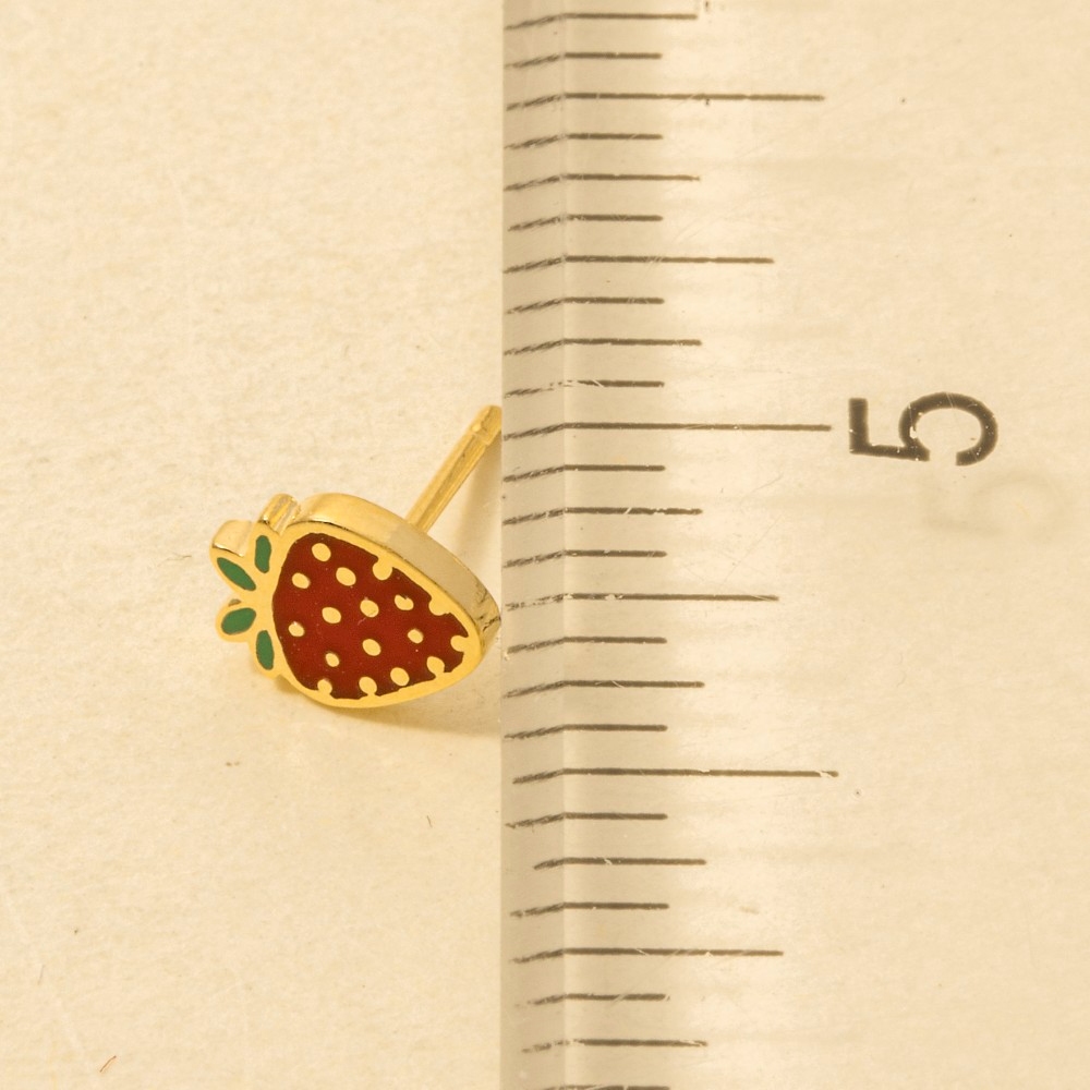 Effortlessly elevate your outfit, this trending pair of earrings possesses a fine gold dipped epoxy strawberry stud earrings design. Perfect for adding some personality and flair to your wardrobe, this trending pair of earrings is a must-have. Available in G, S. This item is sold in packs of 1.