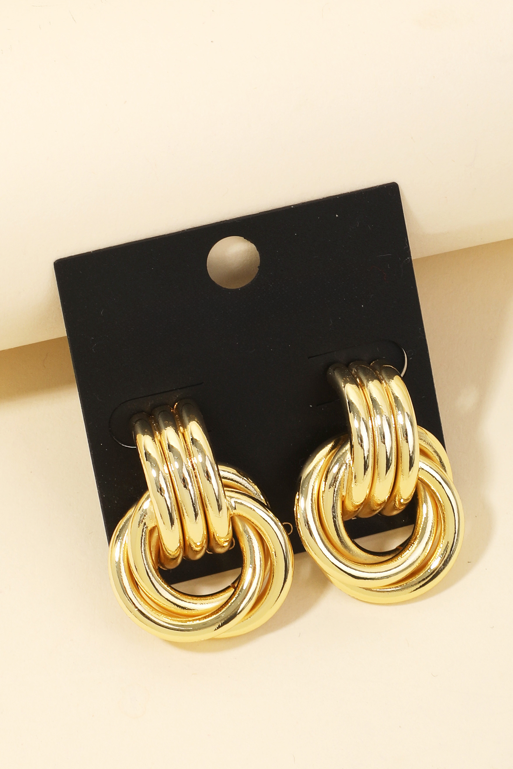 A versatile and stylish addition to any wardrobe, this pair of drop earrings introduces an exceptional gold dipped interlinked hoop design. Transform your outfit into a fashion masterpiece with this versatile pair of drop earrings, an essential for the style-conscious individual. Available in G, S. This item is sold in packs of 12.