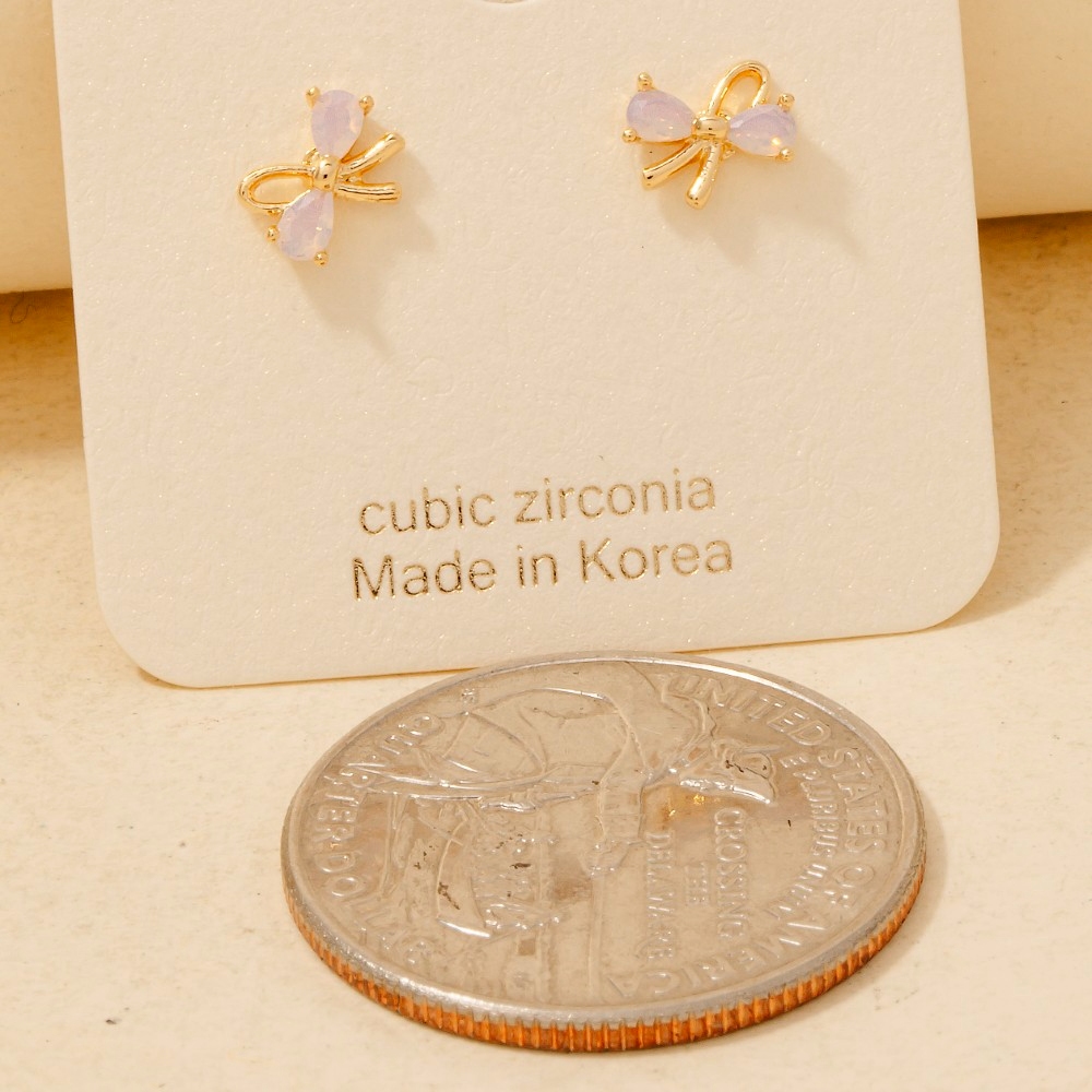Gold Dipped Cz Pave Bow Ribbon Stud Earrings