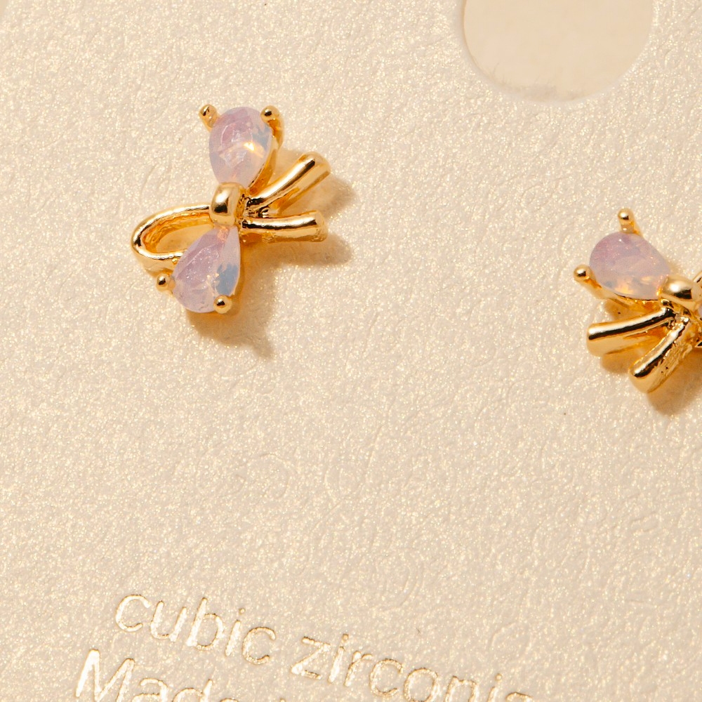 • A must-have addition to any pair of stud earrings collection, this pair of stud earrings incorporates a flawless gold dipped mini cubic zirconia bow design. A versatile pair of stud earrings that's perfect for any occasion, adding a touch of elegance and style to any outfit. Available in G, S. This item is sold in packs of 1.