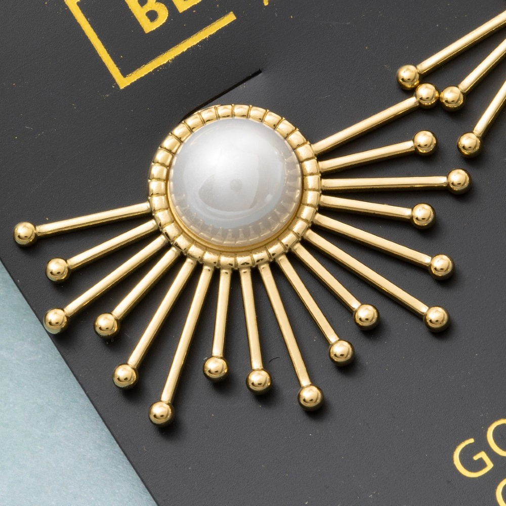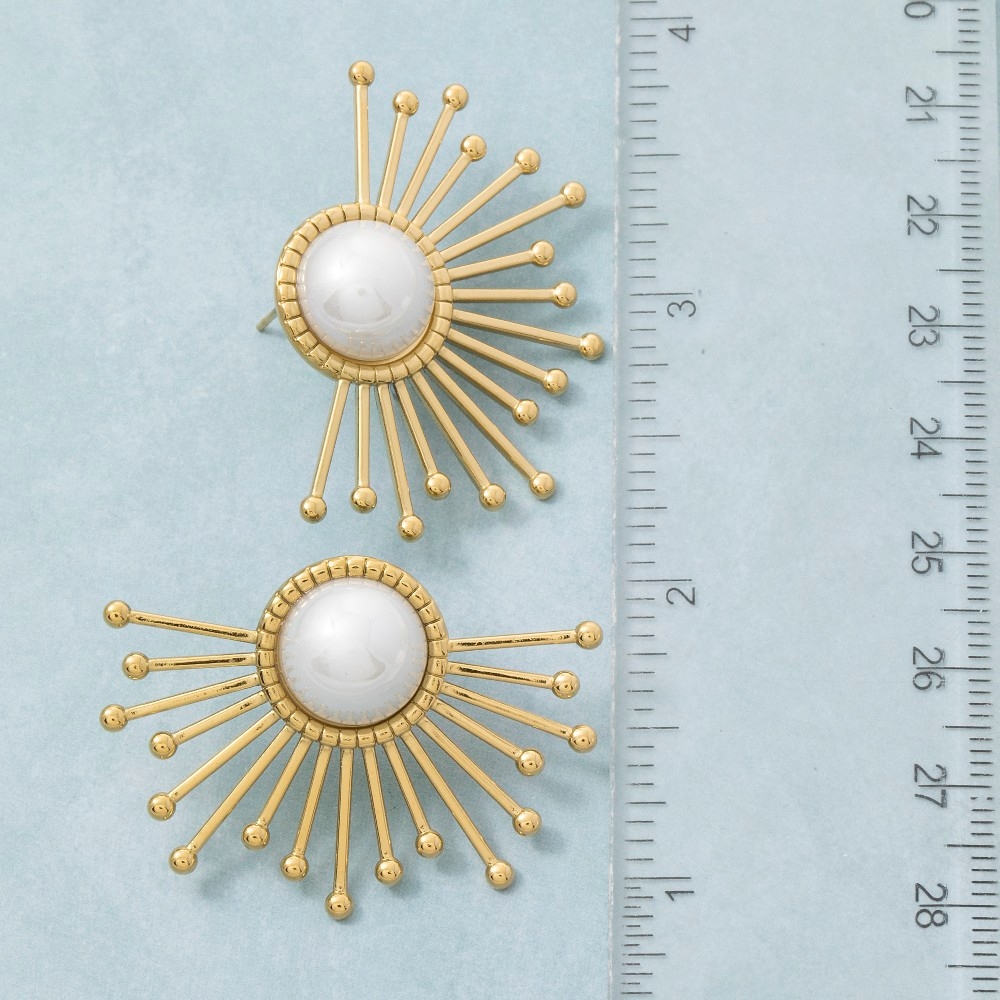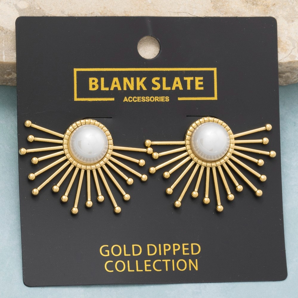 Gold Dipped Sunburst Pearl Center Statement Stud Earrings