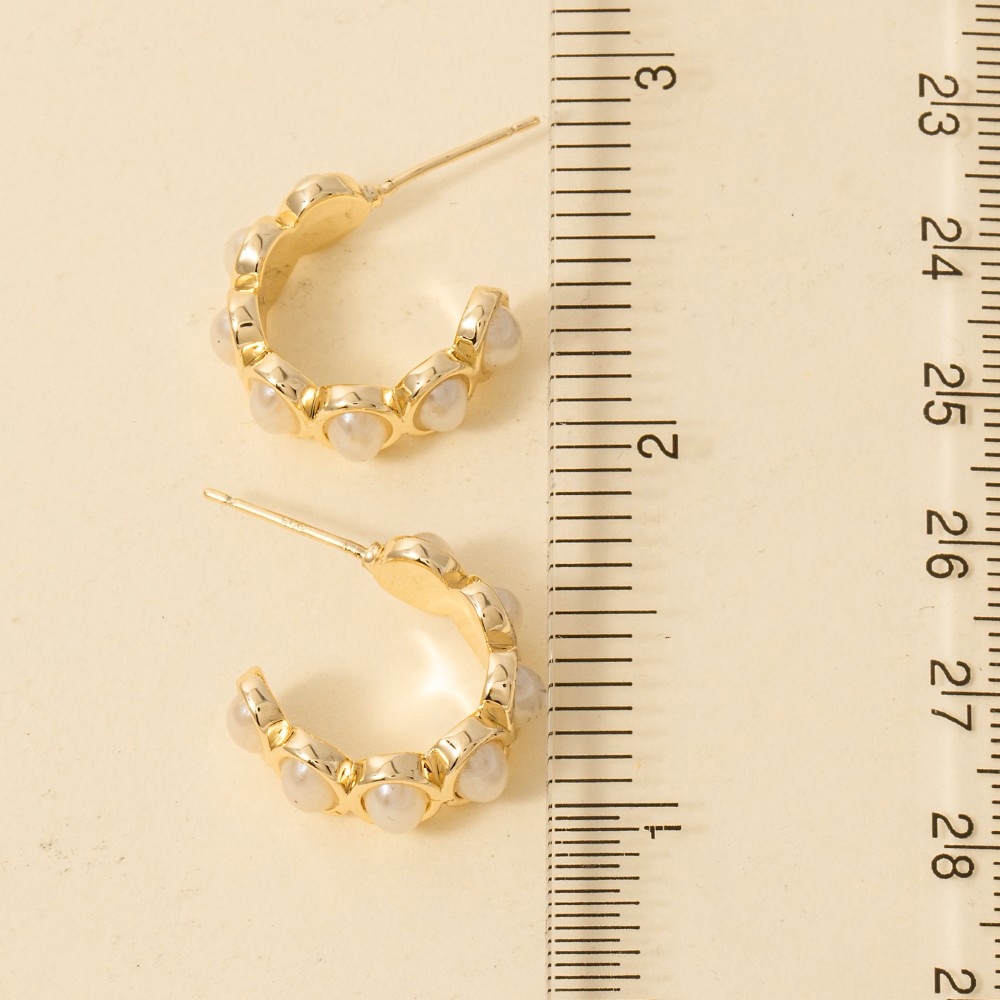 This pair of hoop earrings is made with 90% Brass 10% Plastic Pearl.